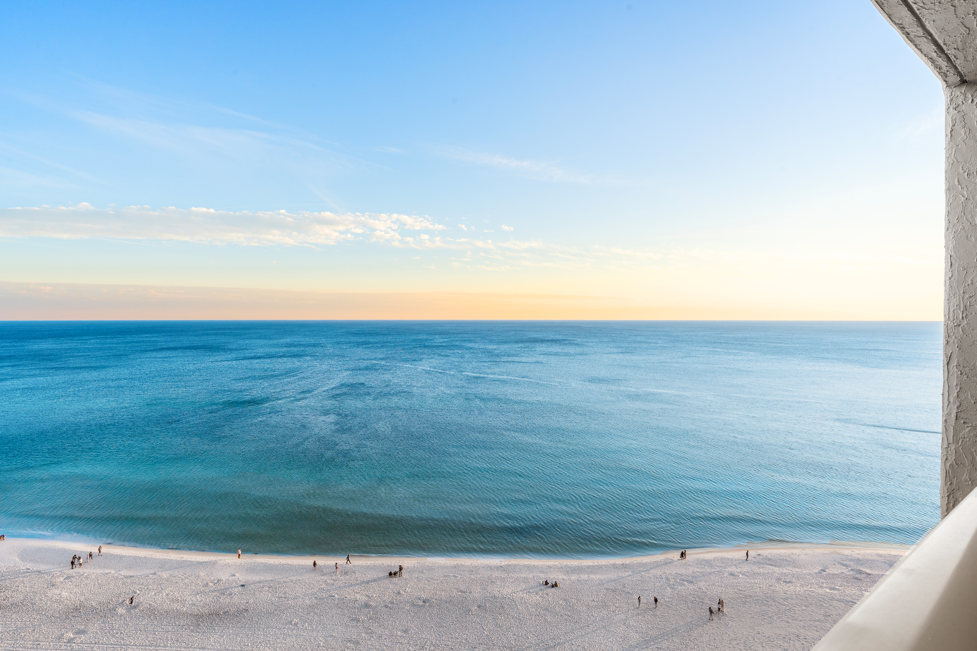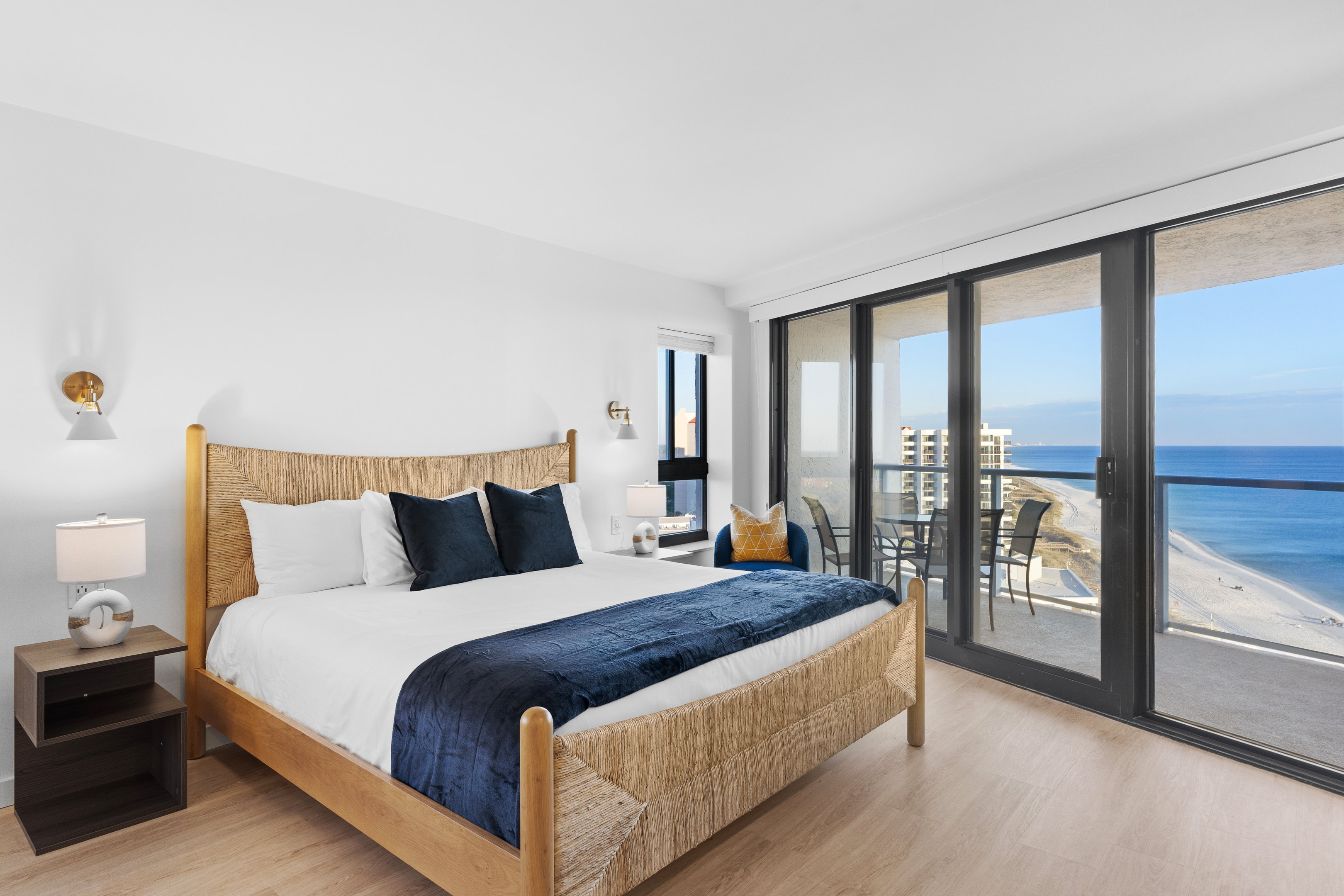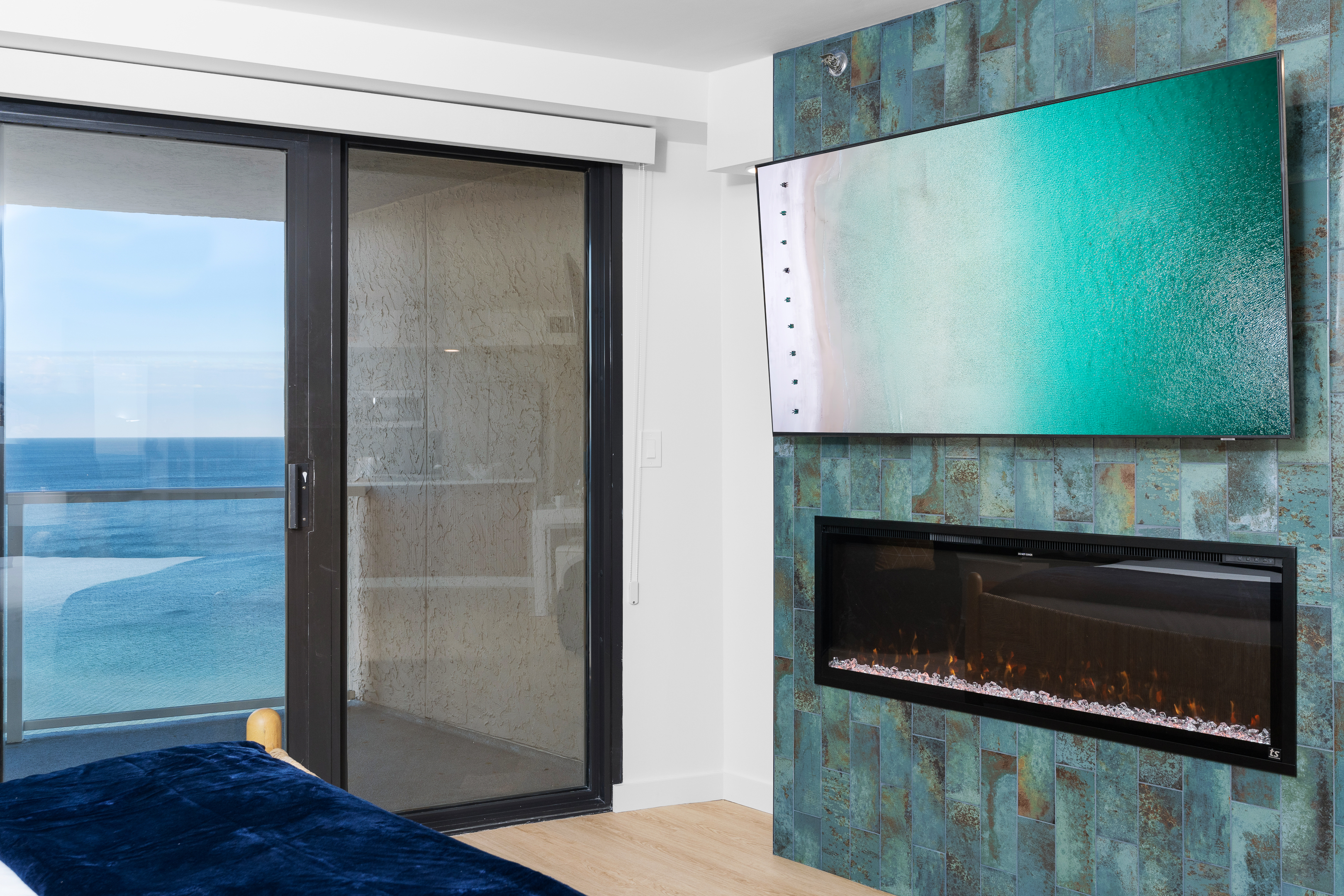 Signature chic + modern oceanfront retreat perched on the top floor with breathtaking Gulf views. This stylish studio features a sleek fireplace, private balcony, and luxe open design. Enjoy fast WiFi, unwind in the hot tub, or relax by the resort pool. Your coveted beach is just steps away. Perfect for a romantic getaway or solo escape, this coastal sanctuary blends comfort, elegance, and unforgettable scenery for the ultimate beachfront experience.