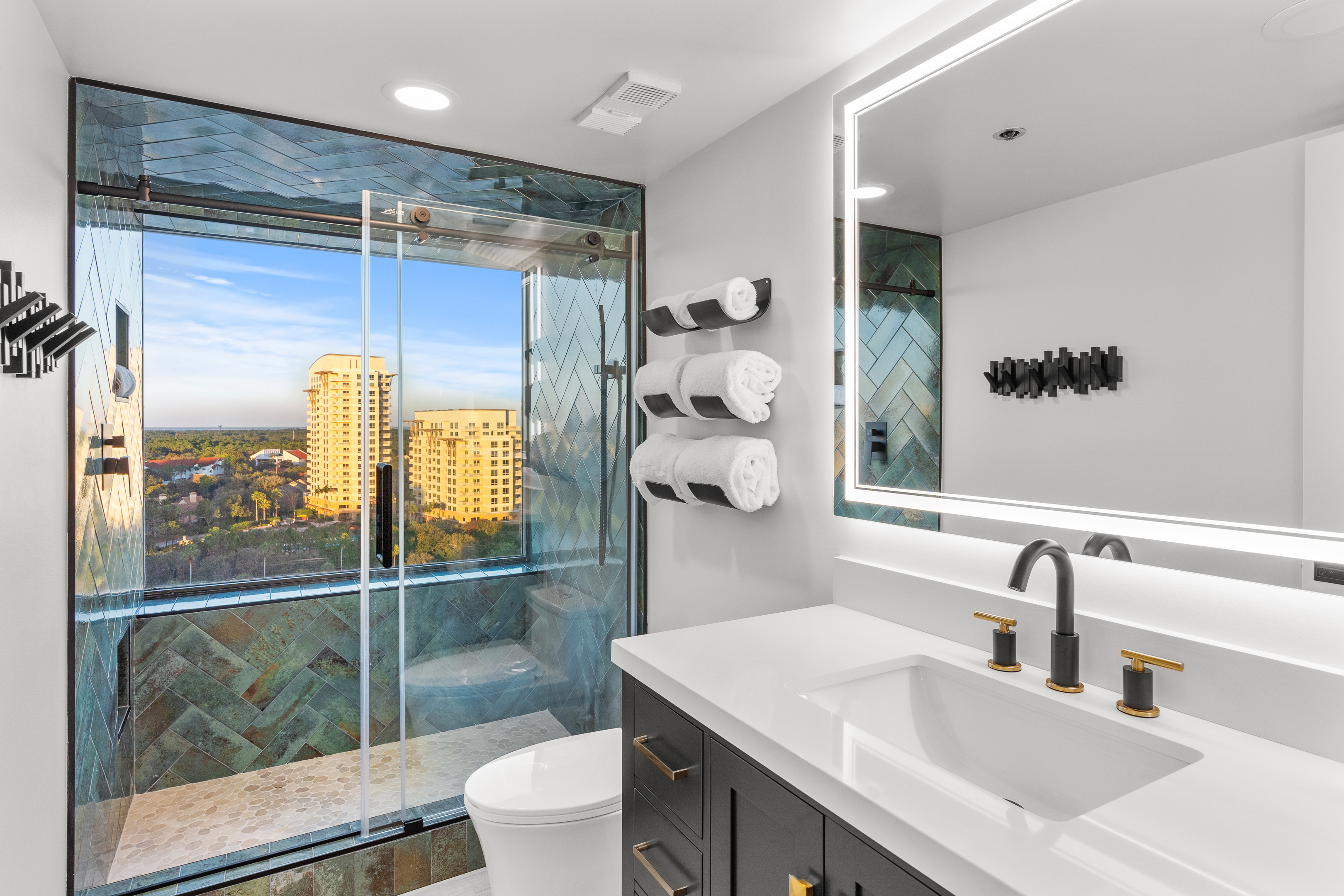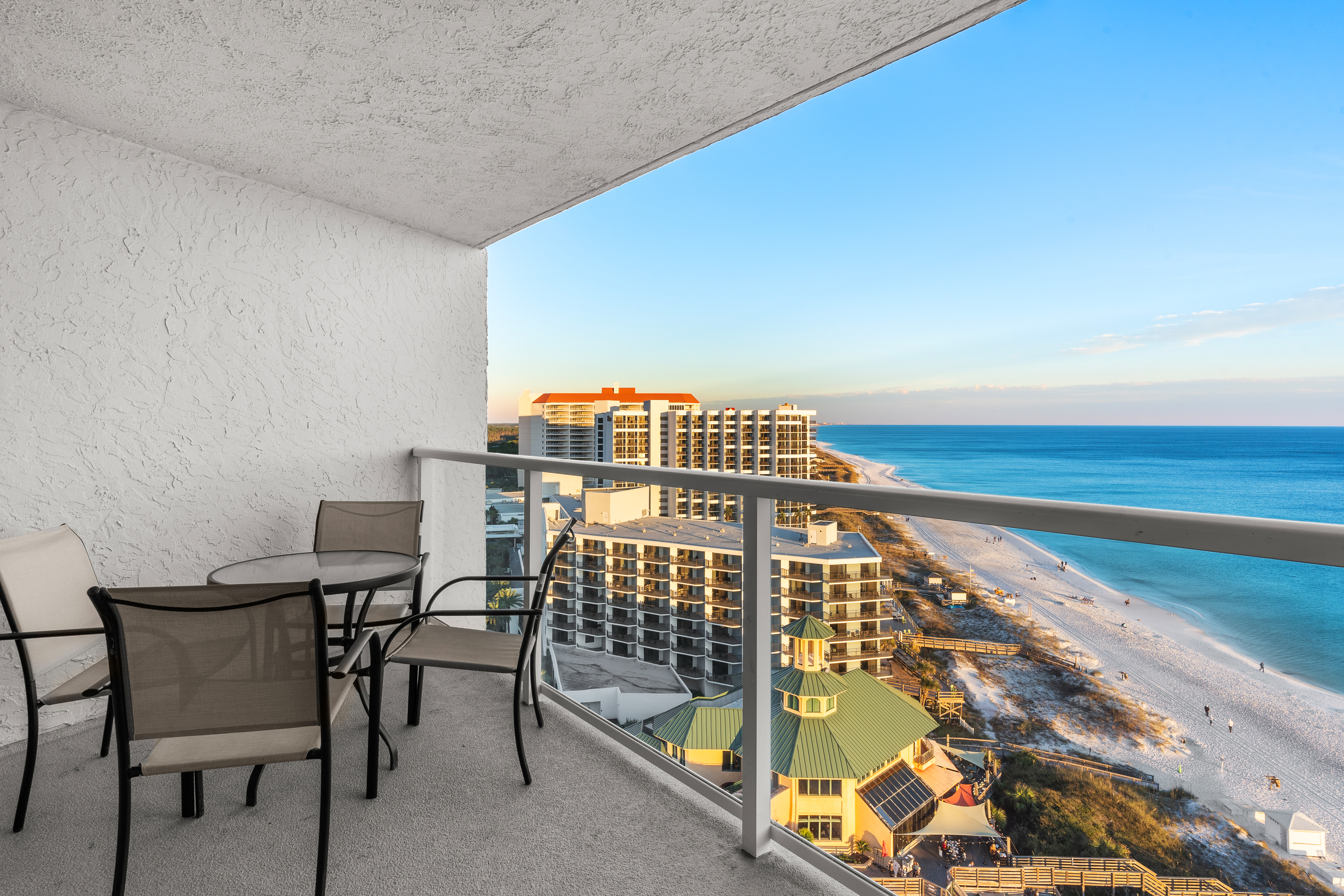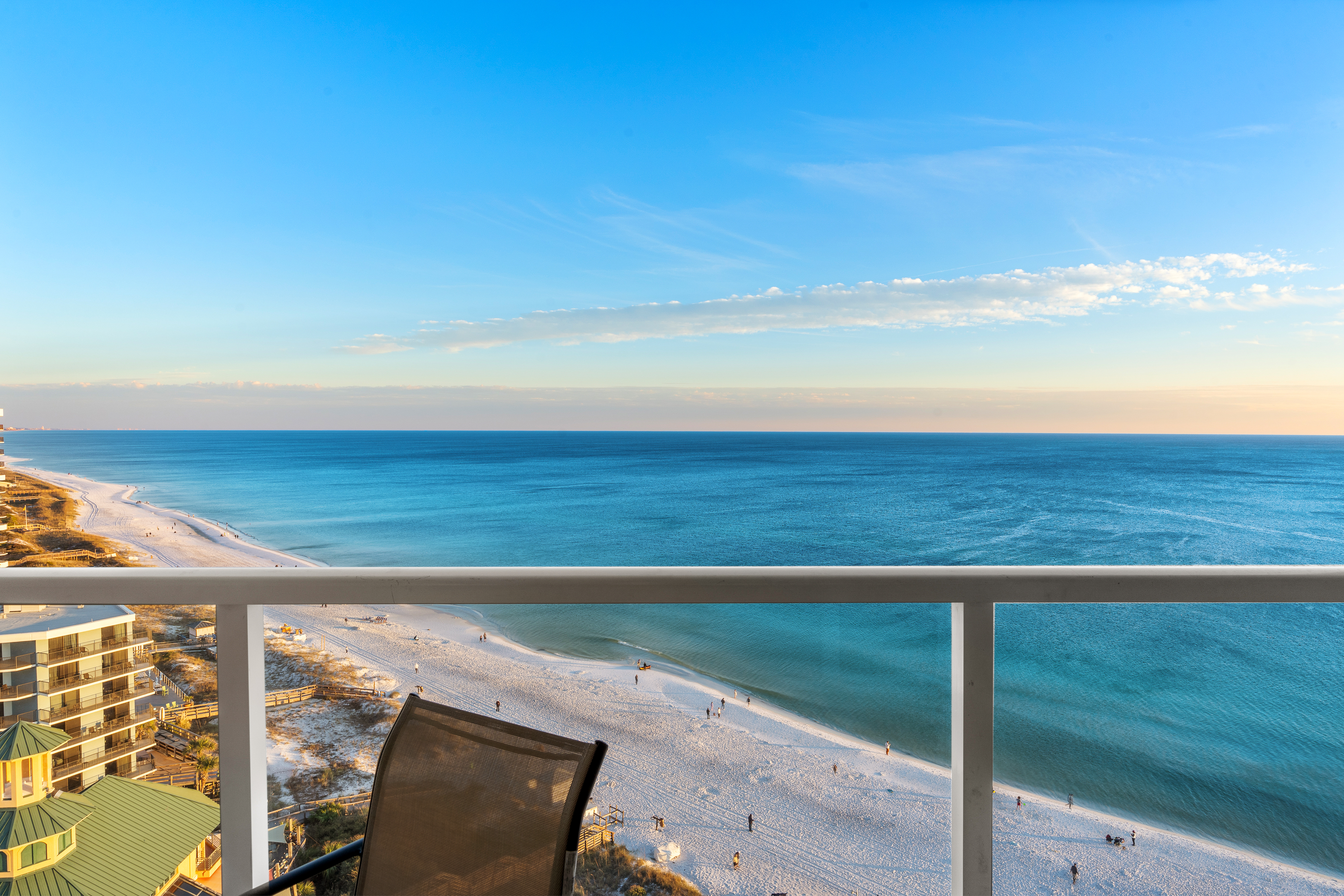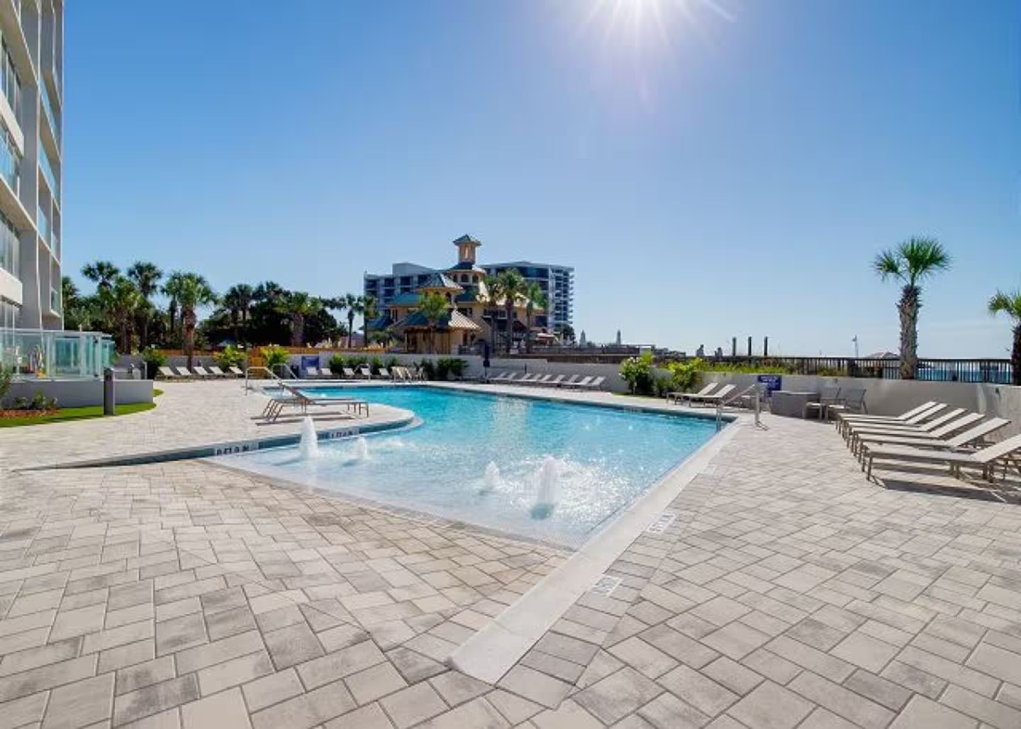 Signature chic + modern oceanfront retreat perched on the top floor with breathtaking Gulf views. This stylish studio features a sleek fireplace, private balcony, and luxe open design. Enjoy fast WiFi, unwind in the hot tub, or relax by the resort pool. Your coveted beach is just steps away. Perfect for a romantic getaway or solo escape, this coastal sanctuary blends comfort, elegance, and unforgettable scenery for the ultimate beachfront experience.