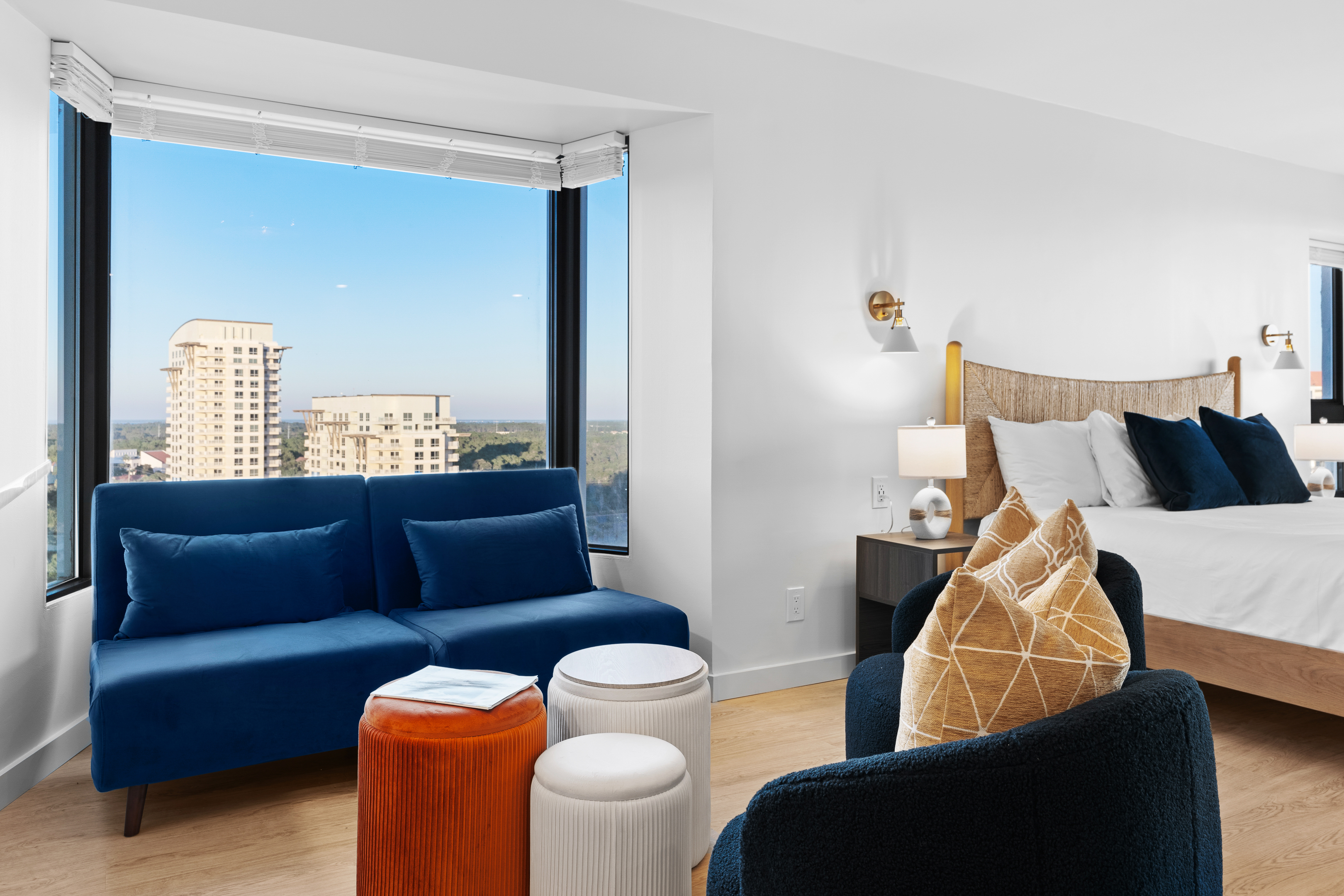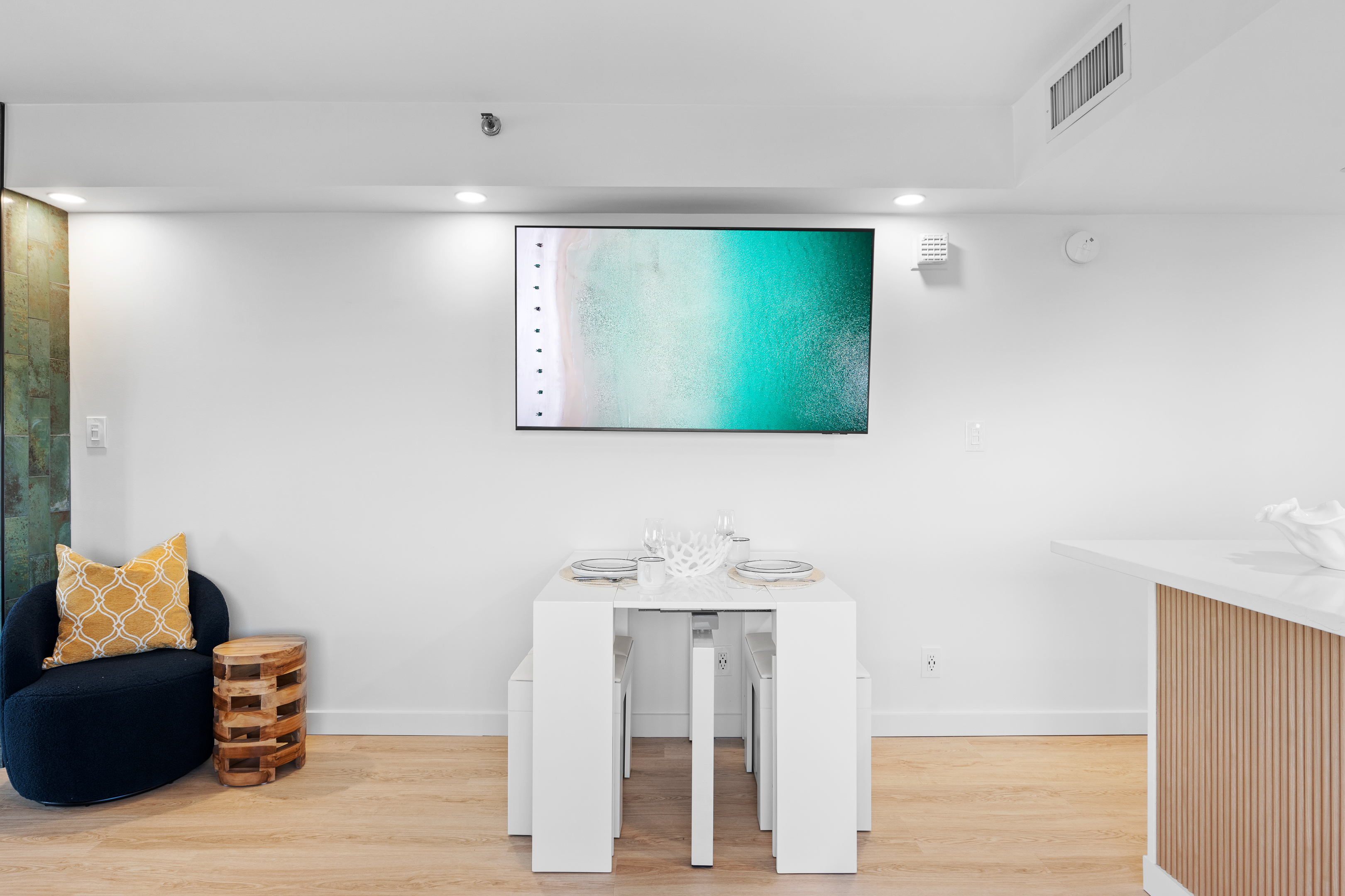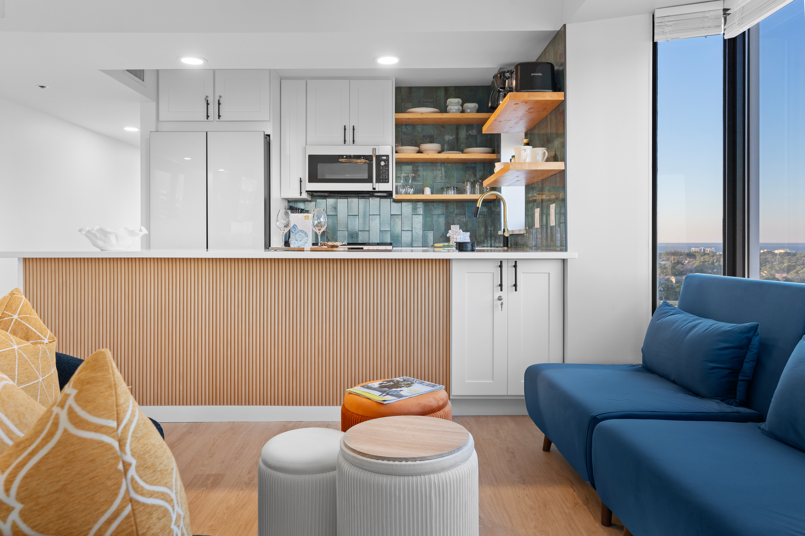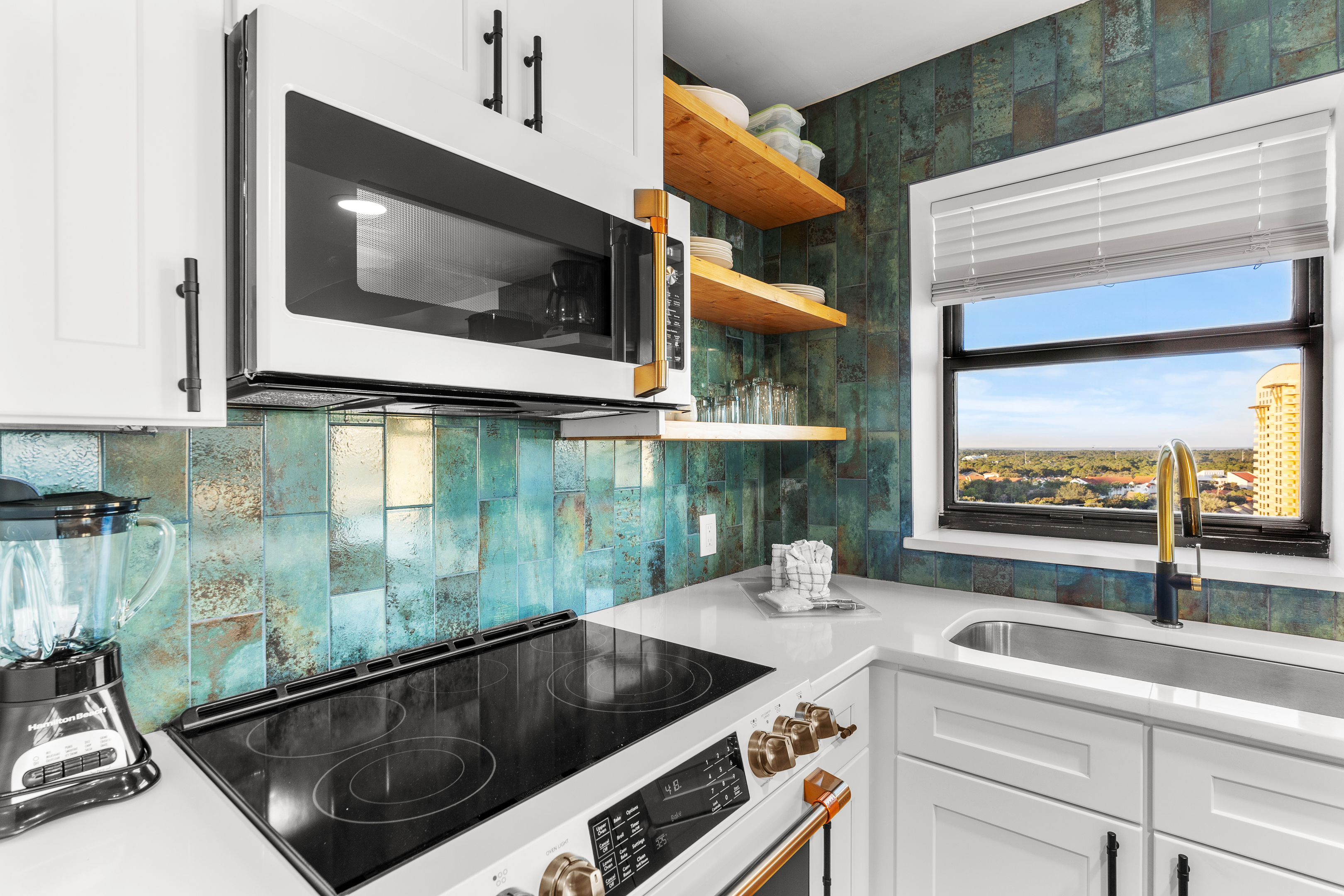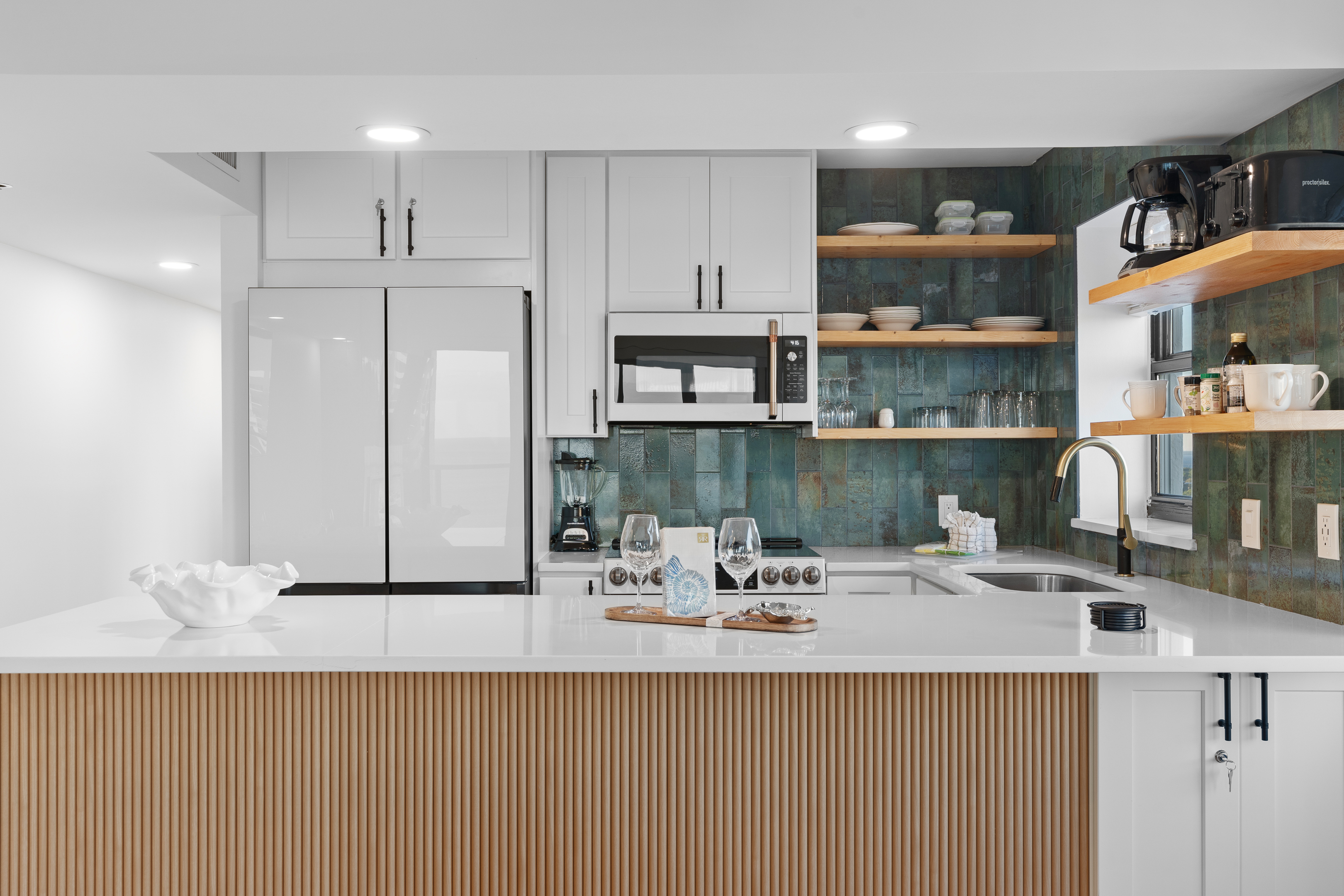 Sleeping Arrangements - Sleeps 2 Studio Bedroom Area: - King bed with soft linens and cozy pillows - Smart TV Netflix - Disney+ and more streaming options; cable + cozy fireplace LIVING ROOM: - Mid-century modern chic navy couch with pillows + two modern barrel chairs - Smart TV with Netflix, Disney+ and more KITCHEN: - Fully equipped kitchen with modern appliances, including microwave, electric stove and oven, refrigerator, freezer, garbage disposal, and dishwasher - Cooking basics like pots, pans, baking sheets, and more (bring your own spices if needed) - Drip coffee maker, toaster, blender, wine glasses, coffee mugs, and more DINING: - Dining table with seating for 2 around a white modern table BATHROOM: - One full bathroom with toilet, designer walk-in shower, and single vanity sink with mirror - Essentials provided such as towels, hand soap, washcloths, and hair dryer OUTDOOR AREAS: - Private beachfront balcony with unobstructed beach/ocean views. - Ride the elevator down to the resort outdoor pool + hot tub to enjoy a swim immediately after check-in EXTRAS: Beach towels Free washer and dryer in-unit Laptop friendly work environment with WiFi for remote work PARKING: Book your stay with KirbyAppeal Vacations today and make this trip one to remember!