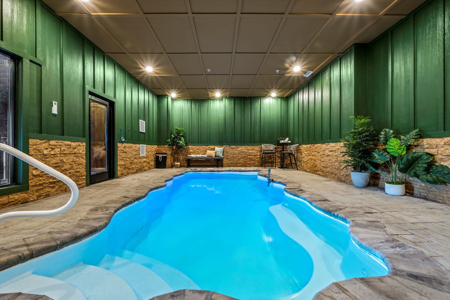 Escape to this luxurious 6 bedroom, 4-bathroom modern cabin, nestled on 4 private acres in the heart of Pigeon Forge. With room for up to 26 guests, this spacious retreat is the ultimate destination for family getaways, group vacations, or any celebration. Enjoy a private indoor pool and a relaxing outdoor pool, as well as two cozy fireplaces to warm up by. Active guests will appreciate the courts for pickleball, basketball, badminton, and soccer, ensuring entertainment for everyone.