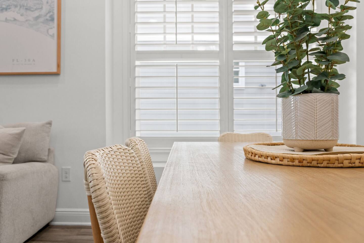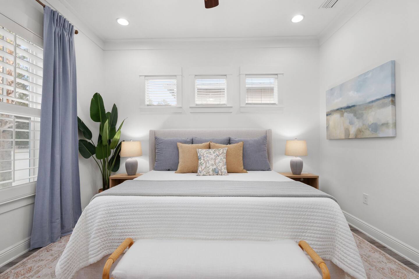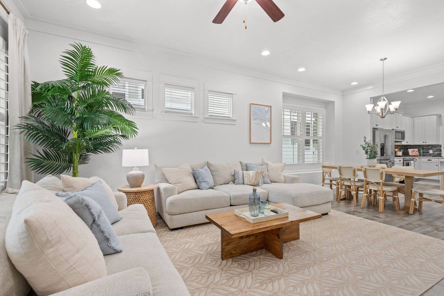 Step inside and make yourself at home. This thoughtfully designed space blends comfort and fun, with open living areas perfect for gathering, cozy bedrooms for unwinding, and easy access to the private screened patio out back. Whether you’re starting your day with coffee, relaxing after the beach, or settling in for movie night, every space is set up for a laid-back, stress-free stay. Location: - 0.7 miles - Phillips Inlet Beach Access - 1.3 miles - Inlet Beach Regional Access (Inlet Beach Regional Access has parking, restrooms, and lifeguards (during peak season). It is the largest county beach access and features three dune walkovers and 117 parking spaces. - 3 minute walk to resort pool - Near 30A and Rosemary Beach Comfortable Sleeping Arrangements – Sleeps 8 including infants Main Bedroom (Sleeps 2 on main level) - King bed with plush linens - Spacious closet + smart TV - Bedroom 2 (Sleeps 2) - King Bed - Smart TV + closet Bedroom 3 (Sleeps 4) - Full over full bunk bed + twin trundle bed - Cozy linens & smart TV Upstairs Loft/Library (Sleeps 2) - Queen pullout sofa bed - Library with a plethora of books and a keyboard to enjoy. KITCHEN: - Stainless appliances with gas range - Pots, pans & cooking essentials (toaster, blender, wine glasses) - Coffee Maker (12 cup drip with coffee) DINING: - Dining for 6 around the table + bar seating for 3 BATHROOMS: - Two full bathrooms (one with a shower/tub combo) - Walk-in shower in master on main level - Half bath on the main level - Starter toiletries, towels & basics provided (bring more as needed) LIVING ROOM: - Air conditioning & heating - Two spacious couches - Free WiFi - Stunning 100 inch Smart TV OUTDOOR AREA: - 4 bicycles to enjoy around Rosemary Beach and to beach access (waiver to be signed during check-in form completion) - Private screened in back porch + fenced backyard - Community pool and neighborhood dock at Lake Powell EXTRAS: - High-speed WiFi + workspace w/deck and chair in library - In-unit washer & dryer PARKING: - Driveway fits 3 vehicles Your stay at Inlet Beach Retreat promises ultimate comfort, unmatched convenience, and a memorable experience. Book your stay with KirbyAppeal Vacations today and make this trip one to remember!