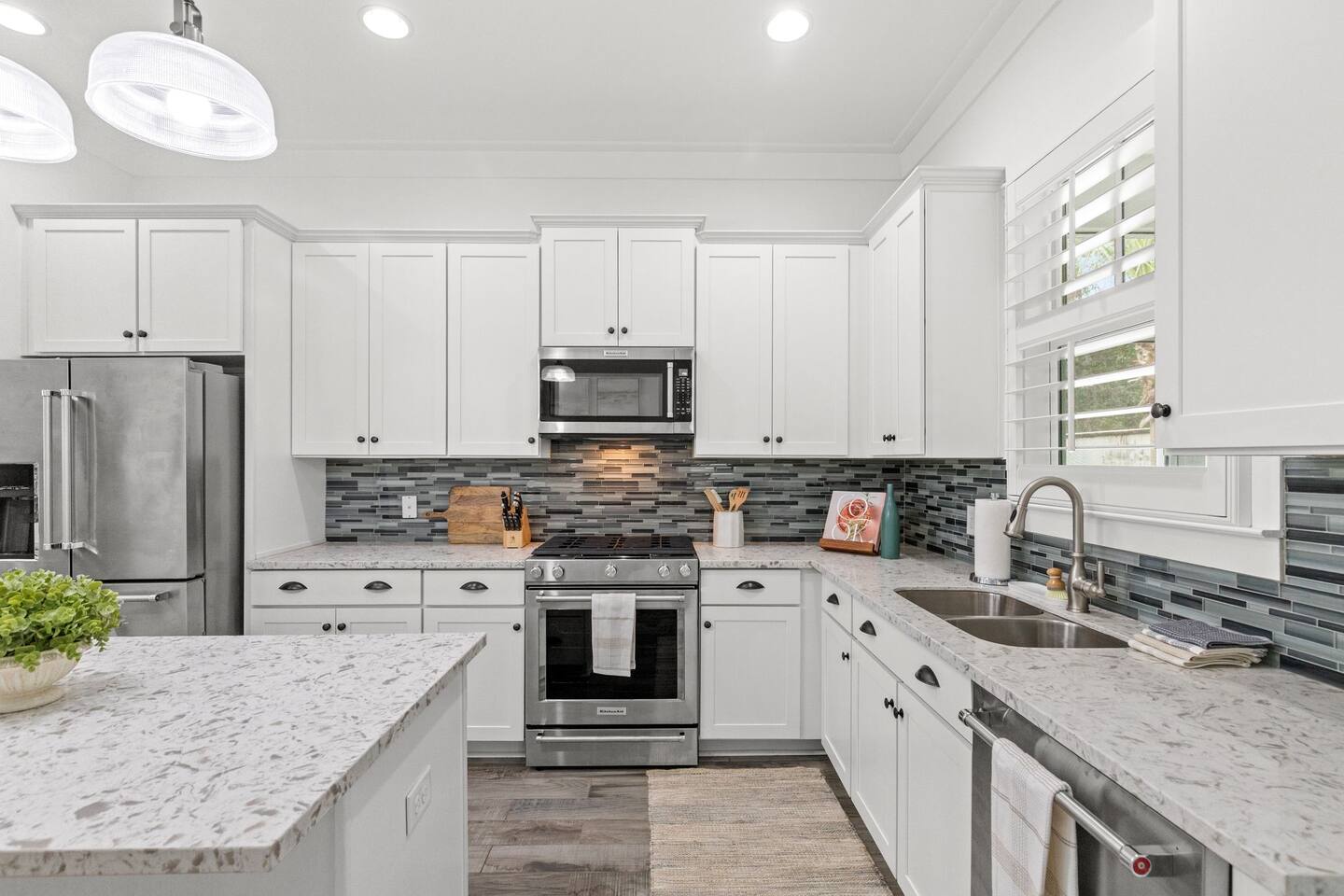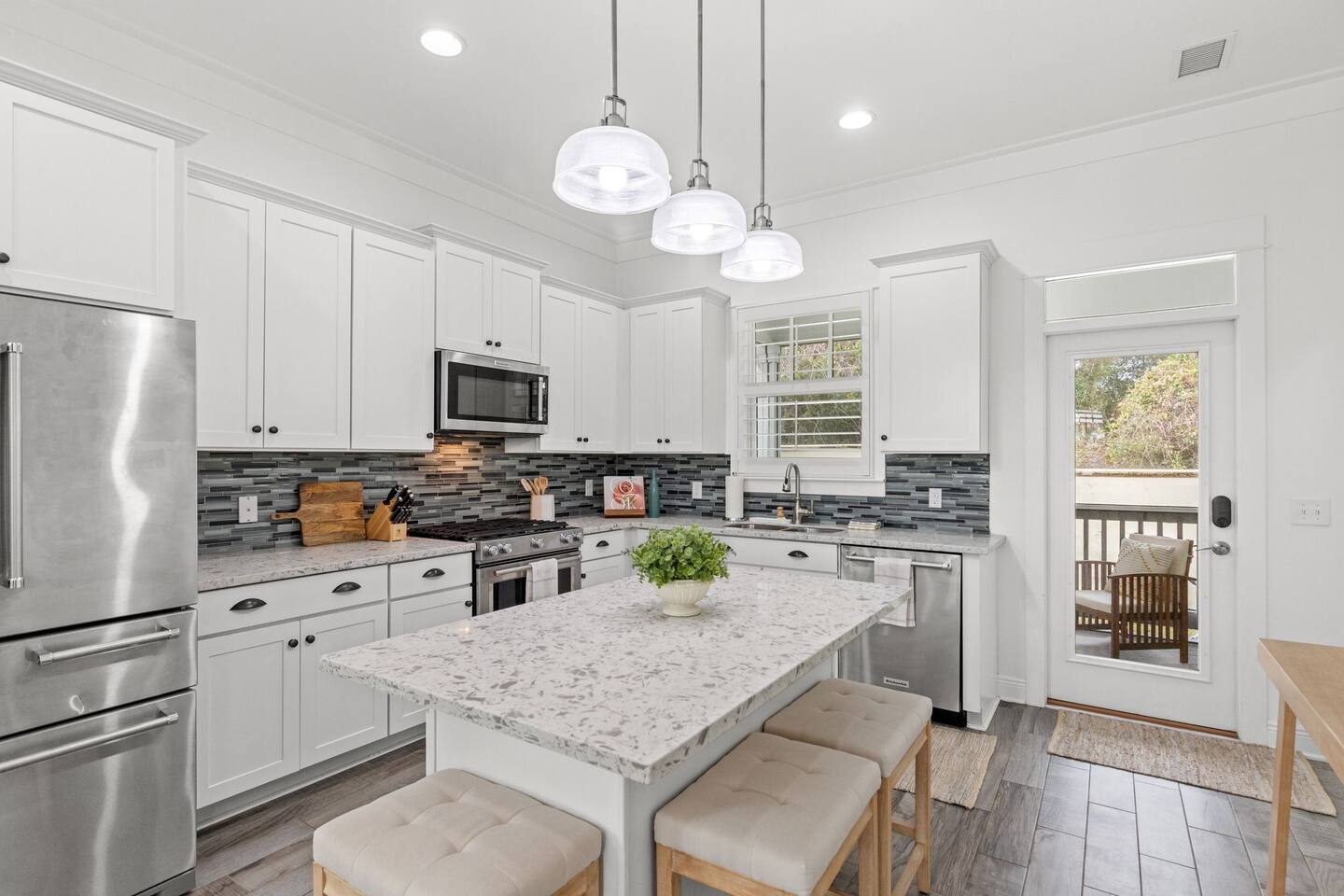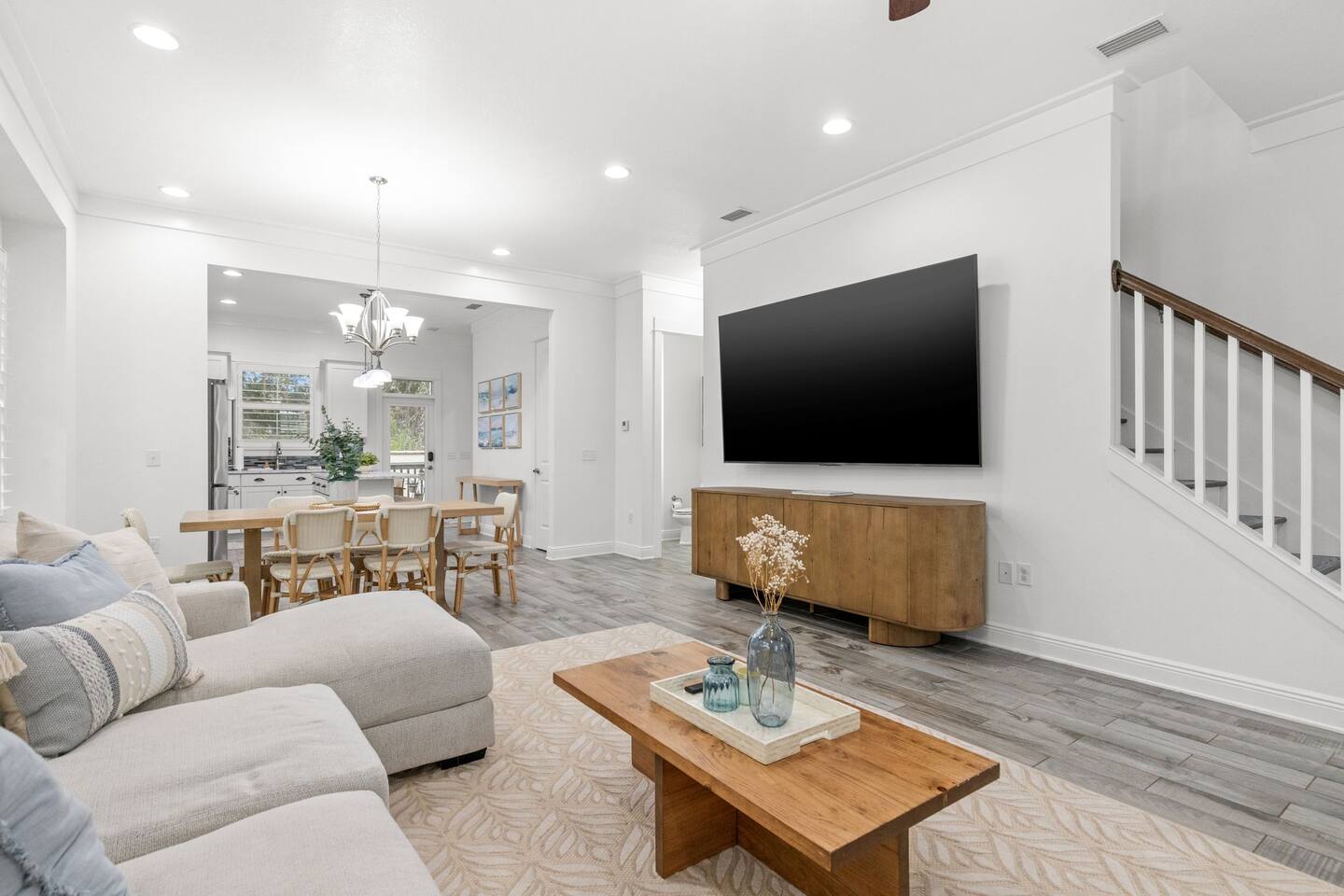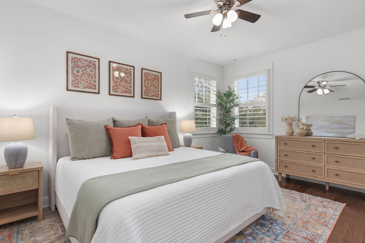 Step inside and make yourself at home. This thoughtfully designed space blends comfort and fun, with open living areas perfect for gathering, cozy bedrooms for unwinding, and easy access to the private screened patio out back. Whether you’re starting your day with coffee, relaxing after the beach, or settling in for movie night, every space is set up for a laid-back, stress-free stay. Location: - 0.7 miles - Phillips Inlet Beach Access - 1.3 miles - Inlet Beach Regional Access (Inlet Beach Regional Access has parking, restrooms, and lifeguards (during peak season). It is the largest county beach access and features three dune walkovers and 117 parking spaces. - 3 minute walk to resort pool - Near 30A and Rosemary Beach Comfortable Sleeping Arrangements – Sleeps 8 including infants Main Bedroom (Sleeps 2 on main level) - King bed with plush linens - Spacious closet + smart TV - Bedroom 2 (Sleeps 2) - King Bed - Smart TV + closet Bedroom 3 (Sleeps 4) - Full over full bunk bed + twin trundle bed - Cozy linens & smart TV Upstairs Loft/Library (Sleeps 2) - Queen pullout sofa bed - Library with a plethora of books and a keyboard to enjoy. KITCHEN: - Stainless appliances with gas range - Pots, pans & cooking essentials (toaster, blender, wine glasses) - Coffee Maker (12 cup drip with coffee) DINING: - Dining for 6 around the table + bar seating for 3 BATHROOMS: - Two full bathrooms (one with a shower/tub combo) - Walk-in shower in master on main level - Half bath on the main level - Starter toiletries, towels & basics provided (bring more as needed) LIVING ROOM: - Air conditioning & heating - Two spacious couches - Free WiFi - Stunning 100 inch Smart TV OUTDOOR AREA: - 4 bicycles to enjoy around Rosemary Beach and to beach access (waiver to be signed during check-in form completion) - Private screened in back porch + fenced backyard - Community pool and neighborhood dock at Lake Powell EXTRAS: - High-speed WiFi + workspace w/deck and chair in library - In-unit washer & dryer PARKING: - Driveway fits 3 vehicles Your stay at Inlet Beach Retreat promises ultimate comfort, unmatched convenience, and a memorable experience. Book your stay with KirbyAppeal Vacations today and make this trip one to remember!