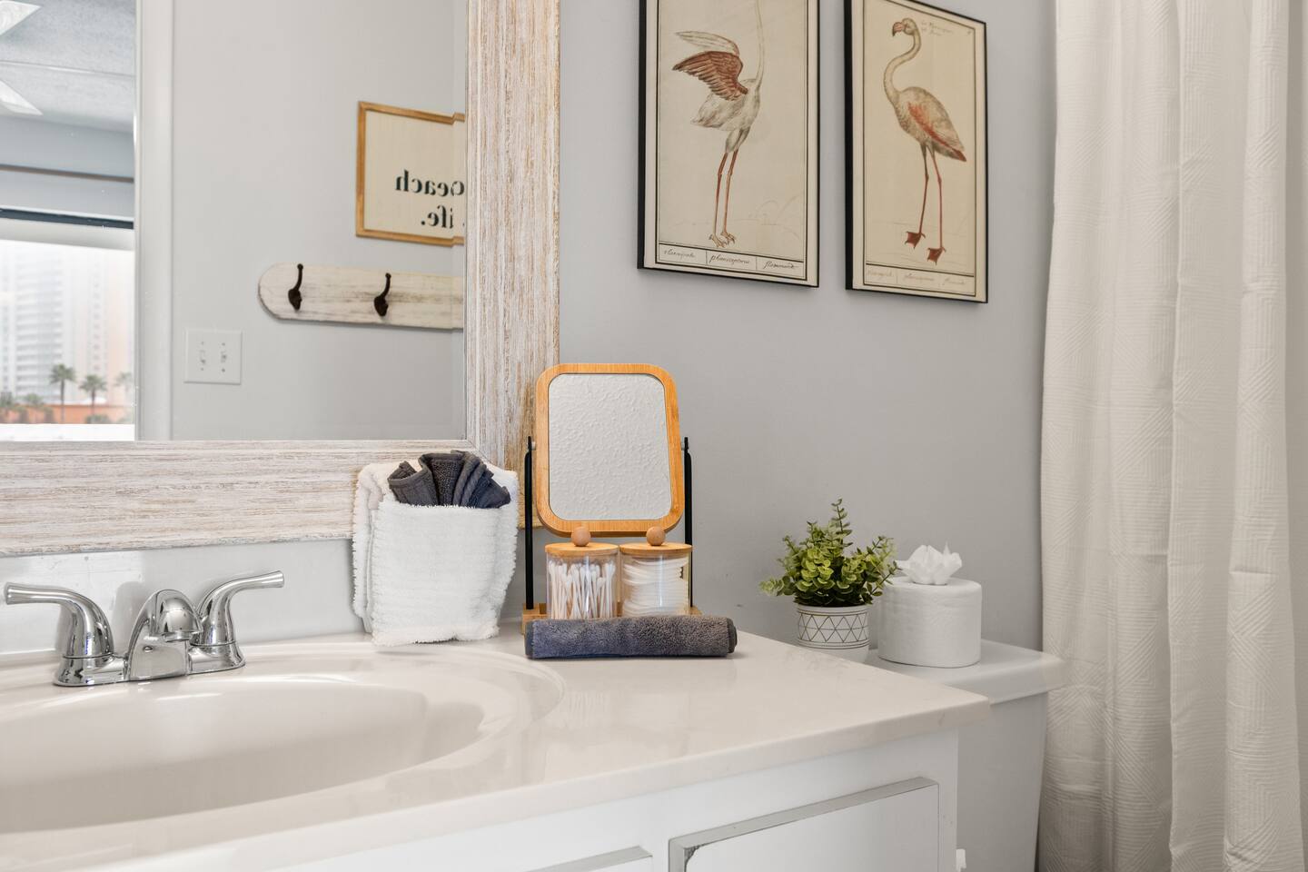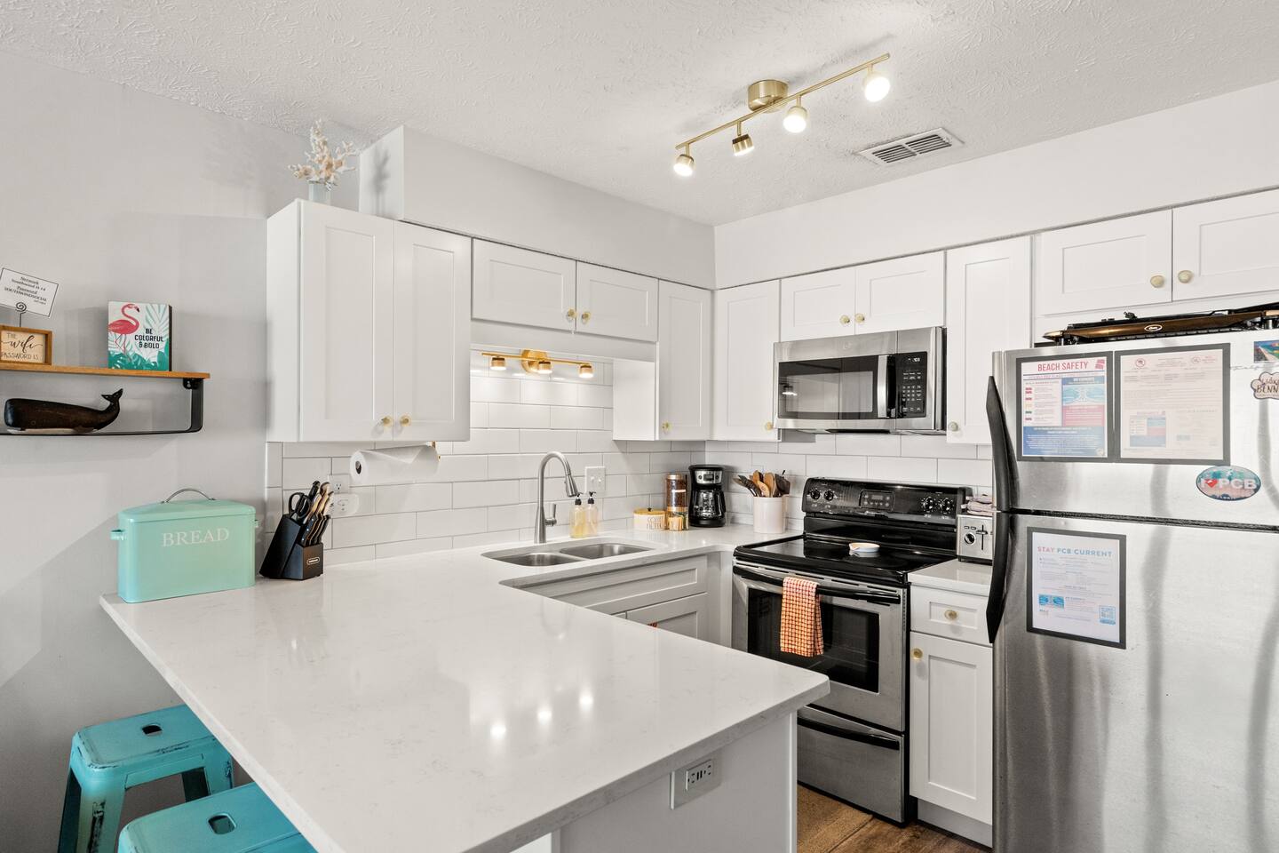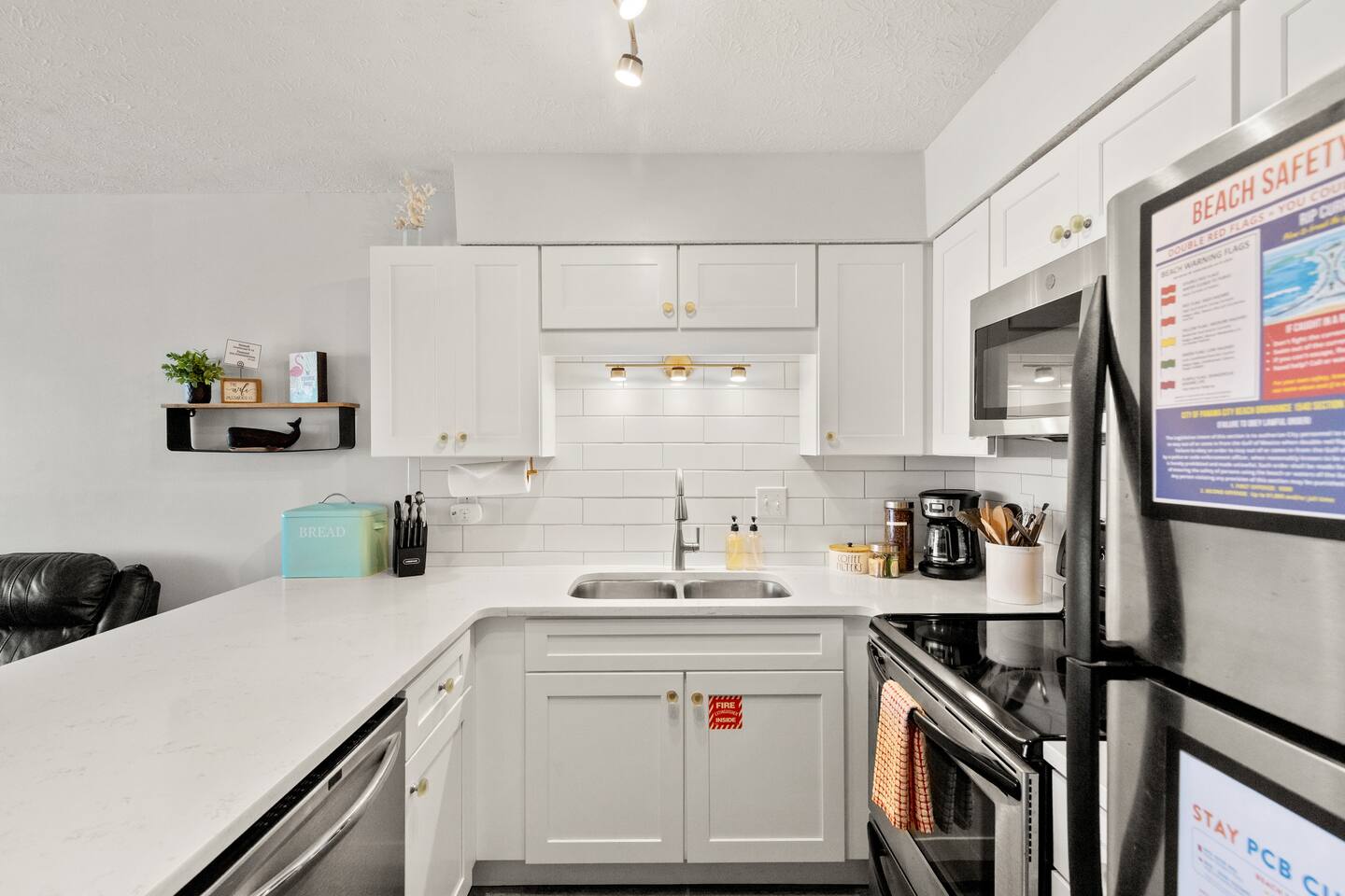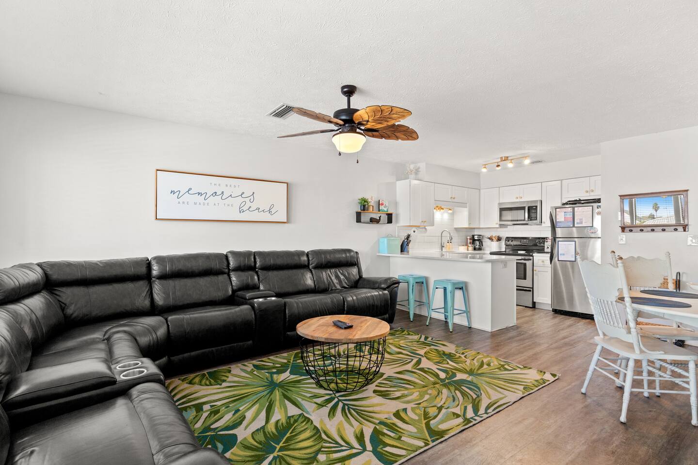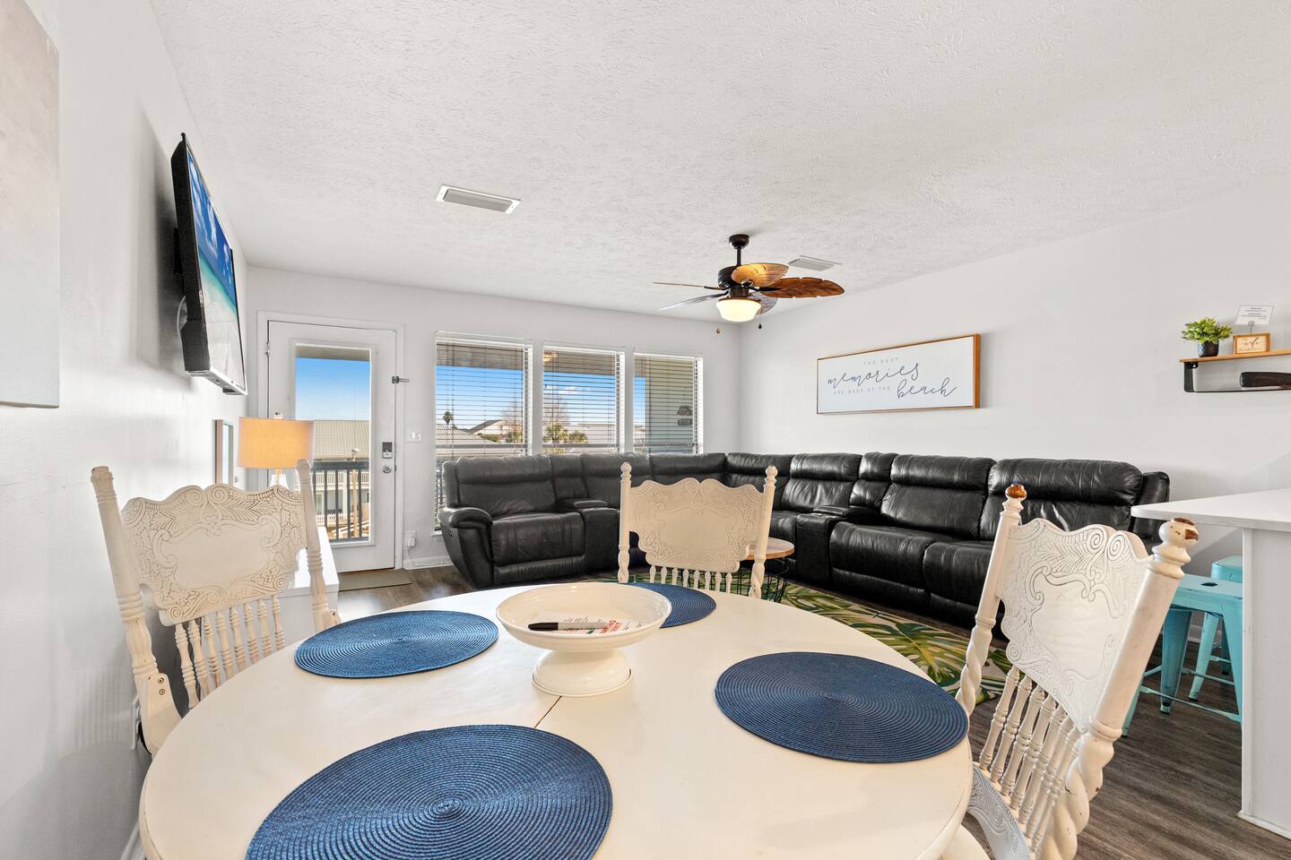 Escape to Southwind Social, your updated 2-bed, 2-bath coastal condo in Panama City Beach, sleeping 6. The fully stocked kitchen features stainless steel appliances, a breakfast bar, a coffee bar for your morning brew, and even children's dinnerware for our younger guests. Enjoy a glass of wine in the evening with the provided wine glasses. Step out onto the front patio for your morning coffee or unwind on the spacious back balcony, which offers serene views of a quiet nature preserve. Sleeping Arrangements - (Sleeps 6 including infants) Main Bedroom: - King bed with soft linens and cozy pillows - Phone charging with USB outlets on lamps - Spacious walk-in closet with plenty of hangers Second Bedroom: - Queen over queen bunk bed with soft linens and cozy pillows - Phone charging with USB outlets on lamps - Spacious closet with plenty of hangers and pack n play LIVING ROOM: - Comfortable and spacious sofa leather sectional - Smart TV with Netflix, Disney+, and basic cable KITCHEN: - Fully equipped kitchen with modern appliances, including microwave, electric stove and oven, refrigerator, freezer, garbage disposal, and dishwasher - Cooking basics like pots, pans, baking sheets, and more (bring your own spices if needed) - Drip coffee maker + full coffee bar with coffee, sugar, and creamer DINING: - Dining table with seating for 6 around a modern glass table and leather chairs BATHROOMS: - Two full bathrooms with toilet, bath and shower combo - Essentials provided such as towels, hand soap, washcloths, and hair dryer - Luxe items such as cotton pads, q-tips, and fully stocked shower gel, shampoo, and conditioner OUTDOOR AREAS: - Private back balcony off main bedroom to enjoy morning coffee or evening drinks - Spacious front balcony with seating and fan to relax - Steps to the resort outdoor pool, pickleball court, putting green, picnic area + grills EXTRAS: Beach cart, chairs, umbrella, and toys Beach towels Free washer and dryer in-unit Iron and ironing board Games to enjoy if rain dampens a beach day Laptop friendly work environment with WiFi for remote work PARKING: Paid on-site parking ($60 for 2 weekly parking passes March - November) ($60 for 2 monthly parking passes November - February). Book your stay at Southwind Social with KirbyAppeal Vacations today and make this trip one to remember!