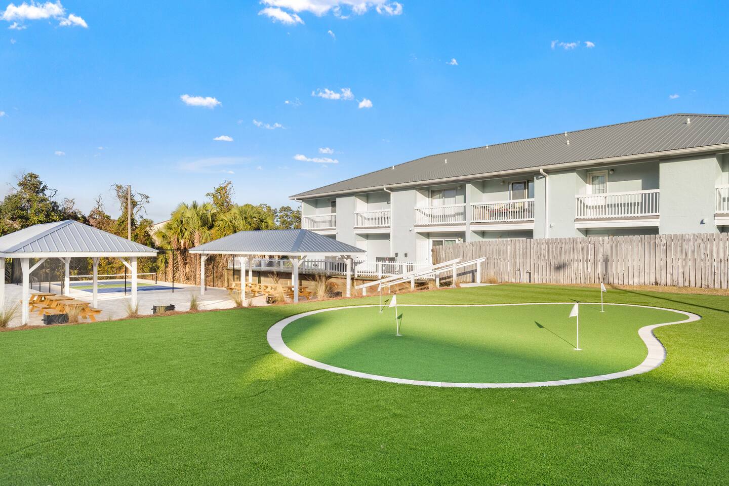 Start your days with salty air and carefree beach time—this laid-back retreat is perfect for families, small groups, and couples traveling together. Enjoy the resort-style pool, pickleball courts, and putting green, or gather at the picnic area with grills. Just a 2–3 minute walk to the beach and only 3 miles from Pier Park and Frank Brown Park, Southwind Social makes it easy to relax, reconnect, and enjoy the best of Panama City Beach.