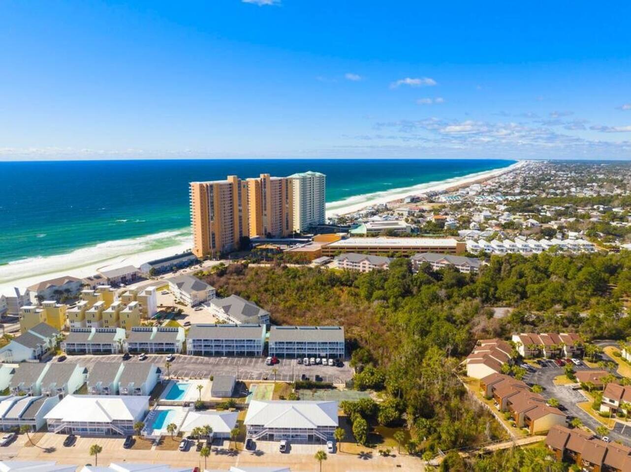 Southwind Social is on the west end of the beach. While there is still plenty of shopping and dining with 30a close by and Pier Park right down the road, the west end of the beach is very quiet. If you should need shopping, dining, or entertainment recommendations they are walking/biking/golf cart distance away. The complex is one off the beach, less than 200 steps to the water line. You will need a vehicle to get around Panama City Beach and during peak season traffic can be heavy.