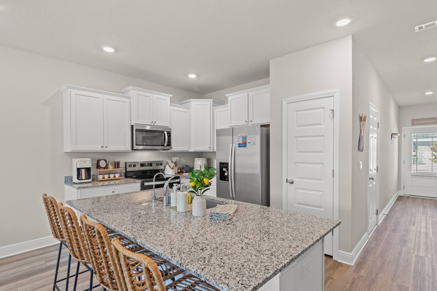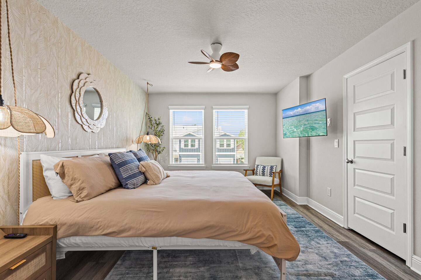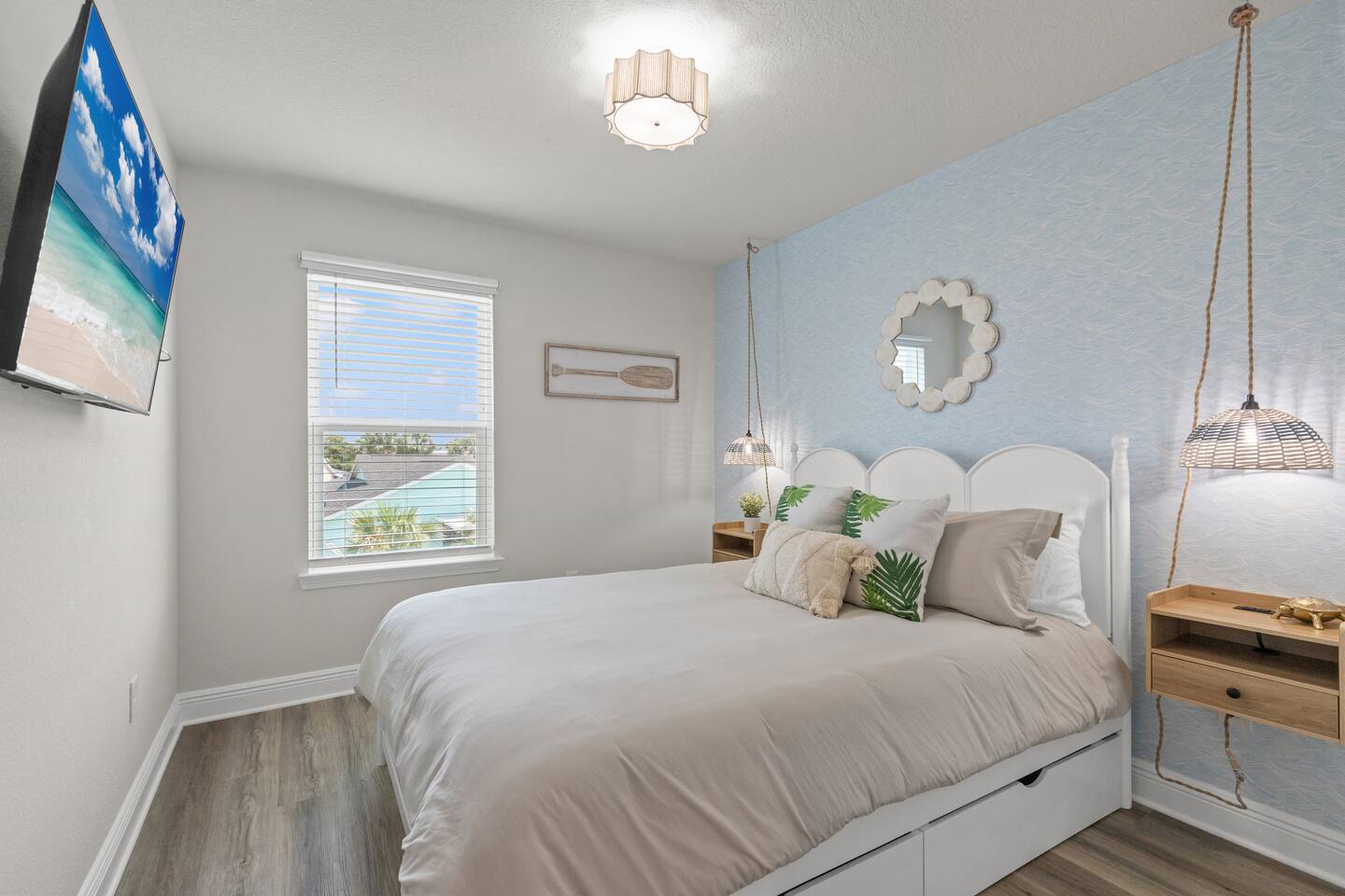 Welcome to Casa del Wave, a chic and stylish 3-bedroom, 2.5-bathroom townhome designed for creating unforgettable memories. With a modern coastal vibe, this bright and airy home is just a short walk from PCB's famous sugar-white sand. The open-concept living space is perfect for gathering after a day at the beach. Relax on the comfortable queen sleeper sofa and stream your favorites on the Smart TV. The fully stocked kitchen, complete with stainless steel appliances and a dedicated coffee bar, has everything you need to prepare delicious meals. Sleeping Arrangements – Sleeps 10 (including infants) Main Bedroom: Unwind in a plush king bed. Features a spacious closet and Smart TV. Bedroom 2: Perfect for kids, this room includes a twin-over-full bunk bed and a twin trundle. Features a Smart TV and a large closet. Bedroom 3: A cozy retreat with a queen bed and a twin trundle. Living Room: Includes a sofa bed for additional guests. LIVING ROOM: Open concept living room with Roku Smart TV, couch with sofa bed, bench + table for a complete cozy room to hangout. KITCHEN: Fully equipped with pots, pans, cooking essentials, a drip coffee maker, toaster, blender + more! Seating for 3 around the kitchen island to bring the whole family together. DINING AREA: Dining table in the open layout with seating for 6. Four dining chairs and a dining bench surround the table for your family to come together for meals. BATHROOMS: Sparkling brand new two full bathrooms upstairs and a half bath downstairs. The main bathroom has a walk-in shower with double sinks; second bathroom with tub/shower combo + half bath on the main level. EXTRA SPACES: Enjoy complimentary use of our beach towels, cart, chairs, tent, and cooler along with two bicycles in the garage. OUTDOOR AREAS: Fire up the gas grill (propane included) on the back patio for an evening barbecue. NEIGHBORHOOD: - New build community of townhomes - Quiet family friendly neighborhood - A short walk to the beach - Quick 5 minute drive to grocery store, gas station, and restaurants Your stay at Casa del Wave promises ultimate comfort, unmatched convenience, and a memorable experience. Book now with KirbyAppeal Vacations and enjoy your Panama City Beach adventure in style!
