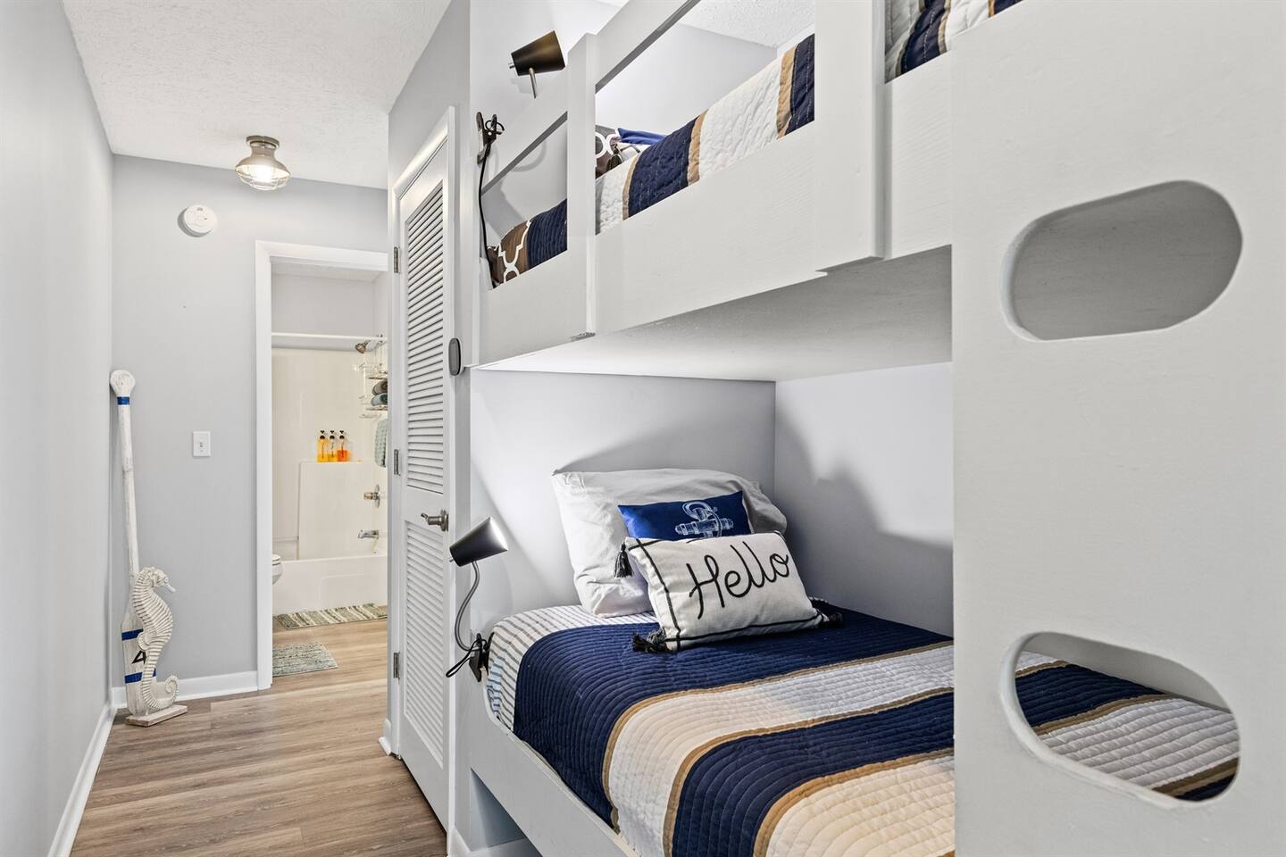 Discover our Panama City Beach condo, Wendwood F-6 with KirbyAppeal Vacations, a family-friendly getaway. Enjoy a resort pool steps away and a 3-minute walk to the beach. Sip coffee from our bar with regular and decaf options while watching shows on a Smart TV with WiFi and cable. The condo features an in-unit washer/dryer, fully stocked kitchen and bathrooms (with hair dryer, q-tips, makeup pads, soap, shampoo, conditioner), a cozy Queen bed, and games for rainy days. Beach cart, towels, and chairs are provided. Book your stay today!!! Sleeping Arrangements - Sleeps 4 including infants Main Bedroom: - Queen bed with soft linens and cozy pillows - Phone charging with USB outlets on lamps - Spacious closet with plenty of hangers and pack n play Hallway: - 2 single beds (bunks) 150 lb. weight limit per bed - Each bed comes with a reading lamp for extra lighting LIVING ROOM: - Comfortable and spacious sofas (2) with pillows, perfect for the family to sit and converse making memories - Smart TV with Netflix, Disney+, and basic cable KITCHEN: - Fully equipped kitchen with modern appliances, including microwave, electric stove and oven, refrigerator, freezer, garbage disposal, and dishwasher - Cooking basics like pots, pans, baking sheets, and more (bring your own spices if needed) - Drip and Keurig coffee makers, toaster, blender, wine glasses, coffee mugs, and more DINING: - Dining table with seating for 4 around a beach themed round table BATHROOM: - One full bathroom with toilet, bath and shower combo, single vanity sink with mirror - Essentials provided such as towels, hand soap, washcloths, and hair dryer - Luxe items such as cotton pads, q-tips, and fully stocked shower gel, shampoo, and conditioner OUTDOOR AREAS: - Private back balcony off bedroom to enjoy morning coffee or evening drinks - Spacious front balcony with high top seating and table to enjoy food and drinks - Steps to the resort outdoor pool to enjoy a swim immediately after check-in EXTRAS: Beach cart, chairs, umbrella, and toys Beach towels Free washer and dryer in-unit Iron and ironing board Games to enjoy if rain dampens a beach day Laptop friendly work environment with WiFi for remote work PARKING: Paid on-site parking ($60 for 2 weekly parking passes March - November) ($60 for 2 monthly parking passes November - February). Book your stay with KirbyAppeal Vacations today and make this trip one to remember!