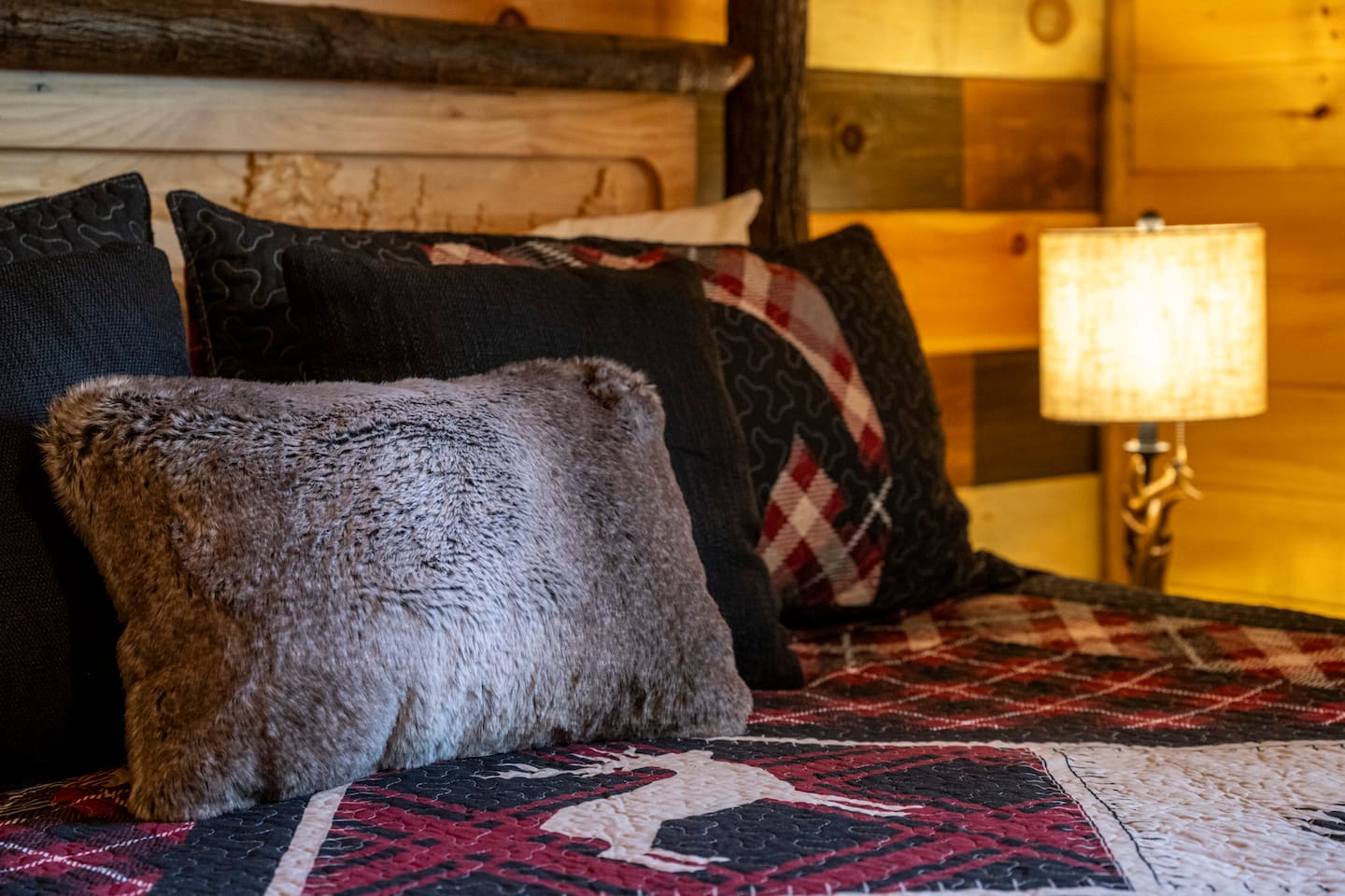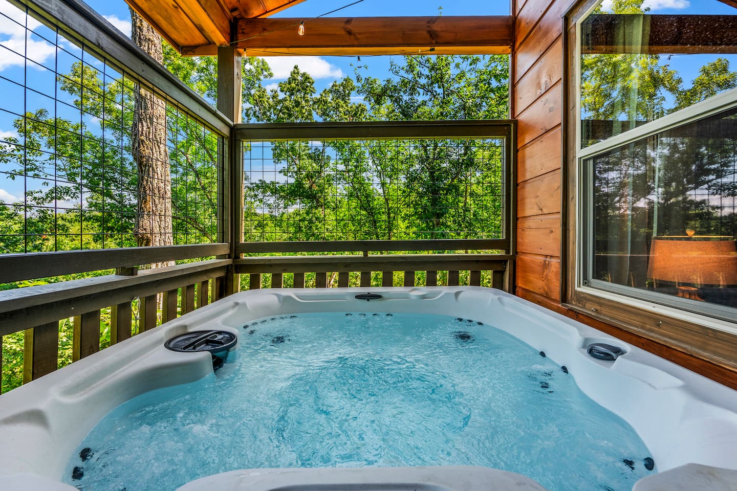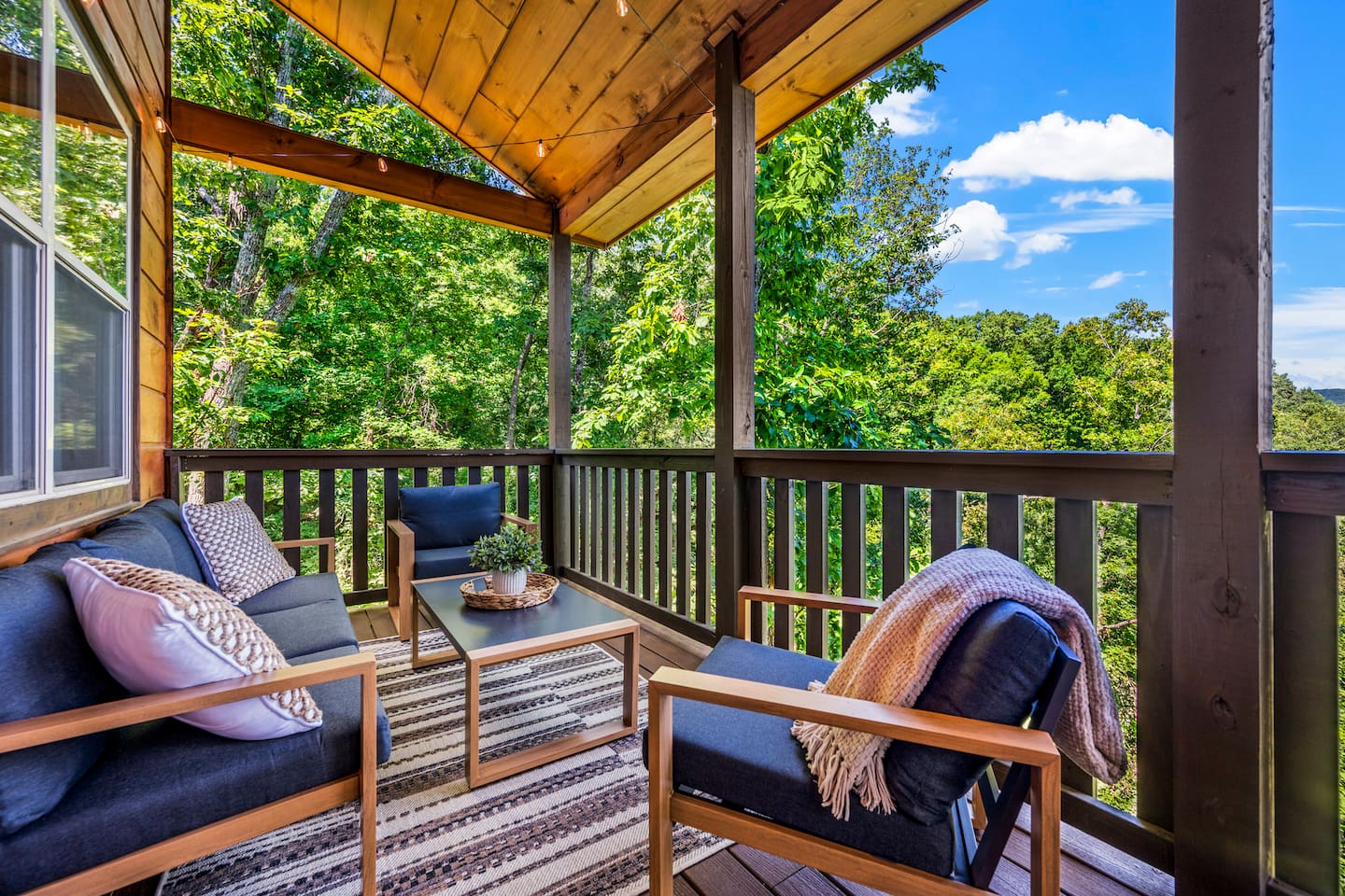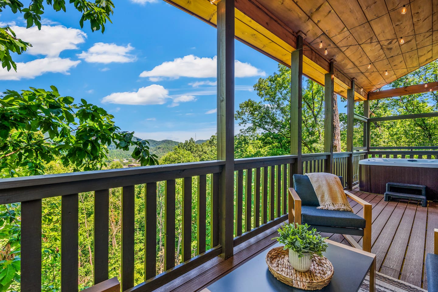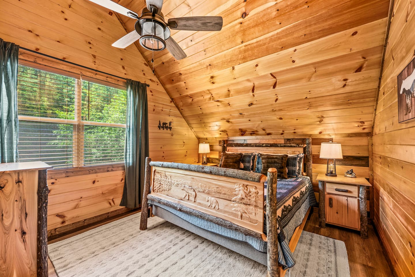 Unwind in the soothing waters of the indoor 16-foot swim spa, relax in the jacuzzi, shoot hoops in the half-court gym, play arcade games, and host epic movie nights in the home theater… for starters. Your premier cabin in Pigeon Forge, Tennessee, is perfect for fun and relaxation on your next family vacation or mountain getaway with friends. Featuring beautiful outdoor spaces with mountain views and wooded surroundings, this charming hideaway in the Great Smoky Mountains is waiting for YOU. Our beautifully appointed 5 bedroom cabin featuring an open loft can accommodate up to 12 guests. With a mix of 3 king beds, 2 queen beds, and 1 queen sleeper, there’s plenty of room for everyone. The 3.5 bathrooms feature shower/tub combos for bubble baths or rejuvenating rinses. Added conveniences include two Pack ’n Plays and a high chair for little ones, a shoe and coat area at the entrance, a fully equipped kitchen with an island, a welcoming dining area, a cozy living room with an electric fireplace, plus a washer/dryer, fast Wi-Fi, and keyless entry. Outdoor Fun Spend quality time with loved ones soaking in the outdoor hot tub, sipping coffee in the rocking chairs, and playing board games together. You’ll have smart TVs in the bedrooms and loft, a big screen TV in the living area, and an even bigger TV in the theater! Extras at this Pigeon Forge cabin rental include wall Connect 4 and tic-tac-toe, a charcoal grill for mountain cookouts, and a flat, paved driveway for easy parking. Kitchen & Dining When you're craving a hearty homemade meal, a quick midnight snack, or classy cocktails with friends, the full kitchen at your cabin has everything you need. Featuring stone counters, a spacious island with bar seating, stainless and black appliances, pots and pans, dishes, glasses, mugs, cutlery, and cooking utensils are all provided for your convenience. A dishwasher makes cleanup a breeze, and a versatile Keurig offers options for both pots and single cups of your favorite hot beverages. The double sink is set beneath a bright window overlooking the trees, and ample natural light streams in from the open-concept dining area. Adjacent to the kitchen is the dining table, where you can enjoy meals together, with additional seating available on the sofas or at the breakfast bar. Between meals, set up a board game, deal cards, work on puzzles, or cover the table for arts and crafts with the kiddos. Swim Spa & Gym A fantastic addition to your Pigeon Forge vacation is the indoor swim spa! This luxurious cabin offers a 16-foot swimming pool with jets, splashy fountains, and underwater seats for a unique experience. You can stretch out and swim like an Olympian with the jets rushing against your shoulders. Plus, this space features a half-court gym with a basketball hoop for even more fun together! Theater & Game Room If you’re looking for family-friendly extras to entertain your group in addition to the indoor swim spa and gym. Look no further than the home theater and game room combo at your luxury cabin in Pigeon Forge. Play Connect 4 and tic-tac-toe on the wall or fire up the Multicade for classic arcade games. There’s also a Big Buck shooting game for 2 players! And when you’re ready for epic movie nights in the Smokies, turn off the lights, get comfy in the theater-style seats or giant bean bag, and press play on the big screen TV. Enjoy a delicious hamburger fresh off the charcoal grill! While the grill is provided, please note that charcoal is not included. You can easily purchase some at a nearby local store. Pet-friendly! 🐾 We welcome up to two pets with a $375 add-on. Please be sure to include your pet in the reservation before arrival so everything is properly noted and prepared for your stay. Note: Before you arrive you will be asked to complete guest verification through third-party provider Happy Guest. This is done to ensure we are keeping up-to-date with short-term rental regulations as well as providing both our guests and our properties with extra protection. Please do so prior to arriving at the property to enable a quick and easy check-in process. Guests must be at least 25 years old to book this cabin. Guests under 25 with stellar reviews may be considered, but a security deposit will be required to reserve the cabin.