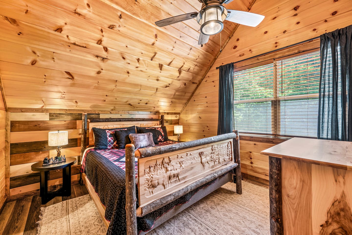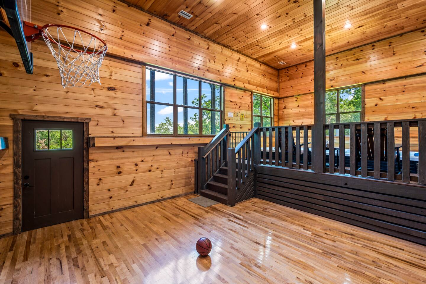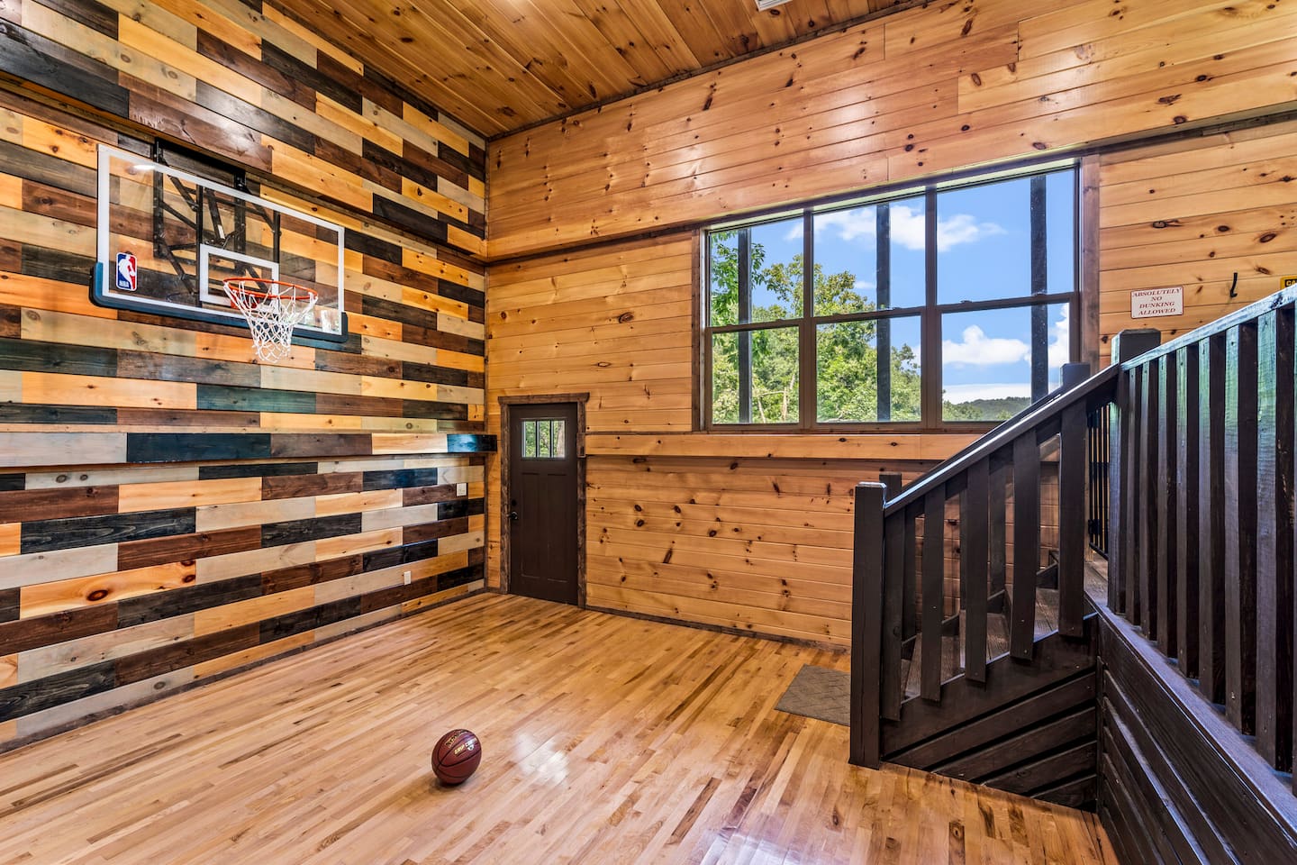 Experience the charm of Pigeon Forge, Tennessee. Conveniently located just 8 miles from Dollywood and The Ripken Experience. Our beautifully appointed 5 bedroom cabin with an open loft accommodates up to 12 guests. Whether you’re savoring quiet mornings in the rocking chairs or enjoying lively evenings on the indoor basketball court or swimming in the pool and jacuzzi. Our cabin features: 3 King-size beds 2 Queen-size beds 1 Queen sleeper sofa 3.5 bathrooms