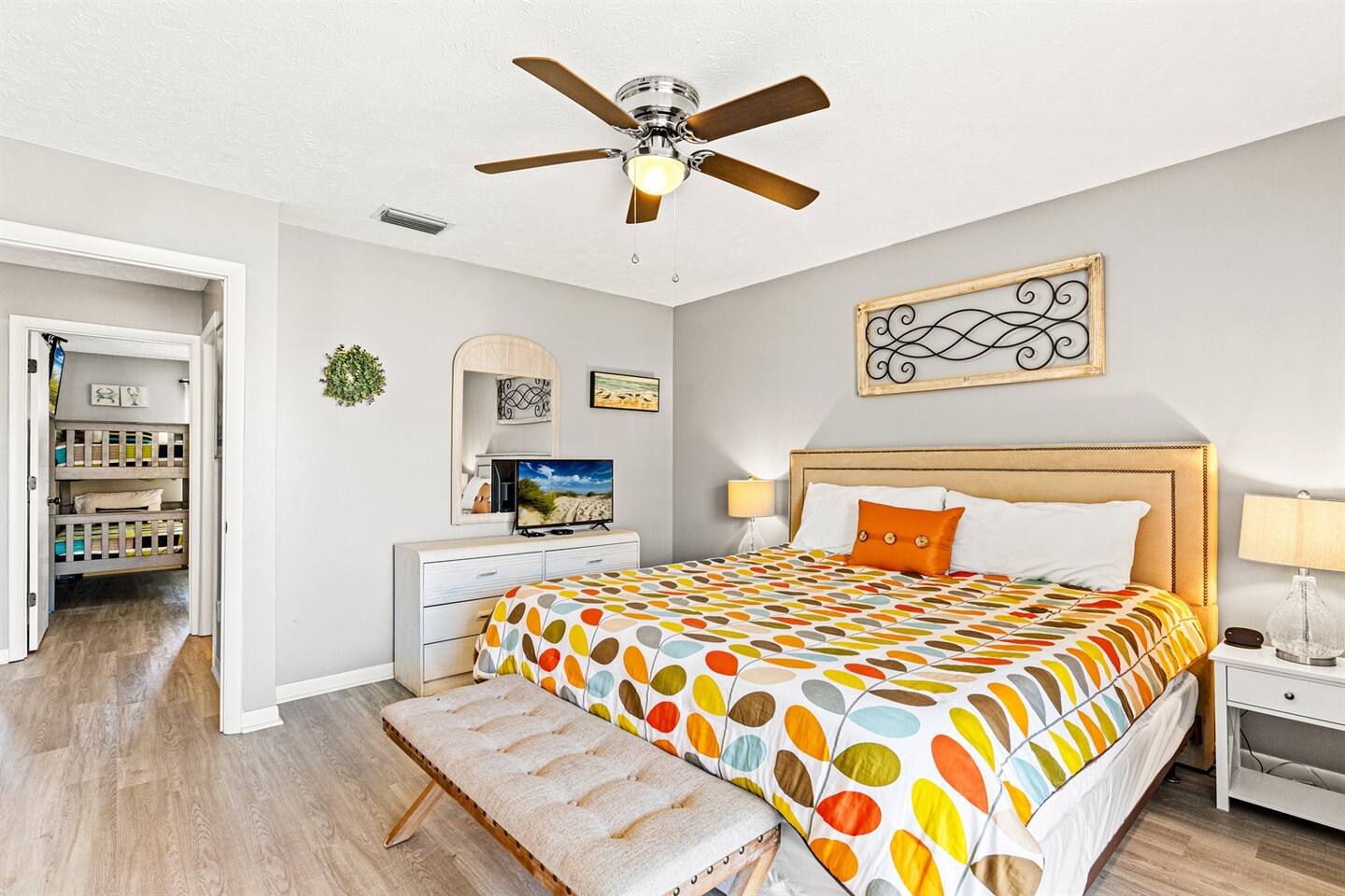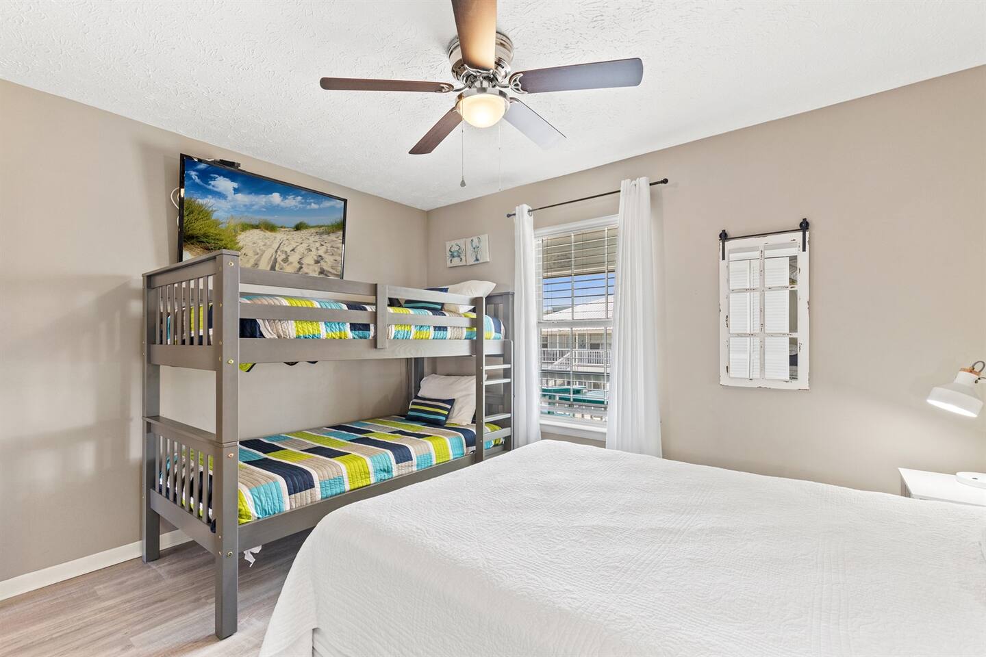 Welcome to your home away from home in Panama City Beach! We offer two beautifully updated, family-friendly condos at Wendwood—choose our spacious 2-bedroom (F5) or our cozy 1-bedroom (F6) for your perfect getaway. Start your day sipping coffee on your private balcony, then take a short 3-minute walk to the sugar-white sands with the provided beach gear. Or, you can lounge by the resort-style pool, located just steps from your door. Evenings are effortless with a comfy living room, Smart TV, and fast Wi-Fi for movie nights. Sleeping Arrangement (2BR UNIT – F5) sleeps 7 including infants Main Bedroom: - King bed, USB charging lamps, and a walk-in closet. - Second Bedroom: Queen bed plus a twin bunk bed (150 lb limit), with a spacious closet and a Pack ’n Play. - Living Room: Queen sleeper sofa for additional guests. Sleeping Arrangements (1BR UNIT – F6) sleeps 4 including infants - Main Bedroom: Queen bed, USB charging lamps, a large closet, and a Pack ’n Play. - Hallway Bunks: Two single bunk beds (150 lb limit each) with individual reading lamps. Kitchen and Dining: - Fully Equipped Kitchen: Enjoy the convenience of a microwave, oven, refrigerator, dishwasher, and both drip and Keurig coffee makers. We also provide an air fryer, blender, pots, pans, and all the dinnerware you'll need. Comfortable Living Room: - Relax on the sofa after a day at the beach and stream your favorites on the Smart TV with Netflix, Disney+, and cable. Beach and More: - Beach Gear Provided: We include a beach cart, chairs, umbrella, toys, and beach towels. Conveniences: - Each unit includes an in-unit washer and dryer, iron, and games for family fun. Bathrooms: - Three full bathrooms with toilet, bath and shower combo, single vanity sink with mirror - Essentials provided such as towels, hand soap, washcloths, and hair dryer - Luxe items such as cotton pads, q-tips, and fully stocked shower gel, shampoo, and conditioner Outdoor Haven: - Steps to the resort outdoor pool to enjoy a swim immediately after check-in - A short 3 minute walk to the beach Safety and Security: - Smoke alarm, carbon monoxide detector, first aid kit, and fire extinguisher Parking and Facilities: - Paid on-site parking ($100 for 4 weekly parking passes March November) ($100 for 4 monthly parking passes November - February). Services: - Long-term stays over 28 nights welcome - Self check-in with a keypad for convenience Book your stay with KirbyAppeal Vacations today!