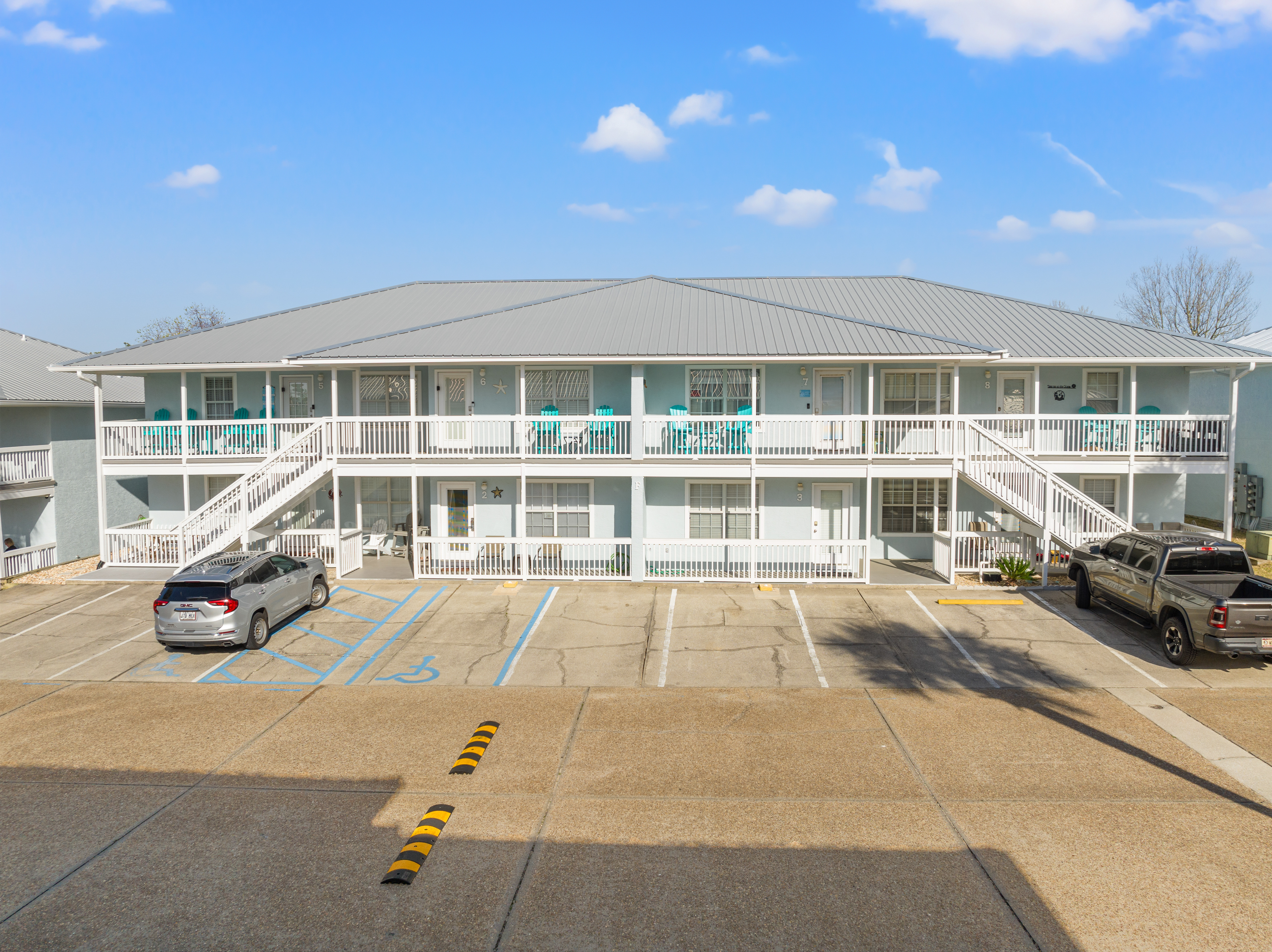 Booking Requirements: To finalize your reservation, you will be required to sign a rental agreement, provide ID verification, and authorize a $1,000 security hold (this is a temporary hold, not a charge). This is completed through a secure third-party guest portal, NOT Airbnb. As an alternative option, you may purchase a non-refundable damage waiver for $59. Optional Services: Early check-in and late check-out may be available for an additional fee ($19/hr), subject to availability. Please inquire for details. Safety & Security: Your safety is our priority. The home is equipped with a smoke alarm, carbon monoxide alarm, fire extinguisher, and a first aid kit. For security, exterior cameras are located at the front door and back patio. 150 lb. limit per bunk bed. Accessibility: Please note that both condos are second-floor walk-up units. There is no elevator access on the property. Local Wildlife: This is a coastal environment. While we have regular professional pest control, you may encounter small animals or insects in or around the condo. Registration Number: 62716