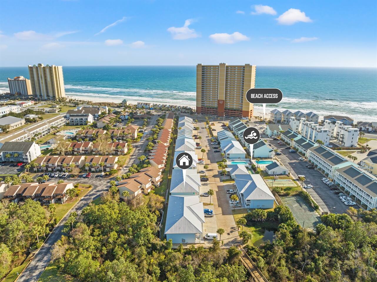 Wendwood Condominiums are located in the heart of Panama City Beach, just minutes from the white-sand beaches and emerald waters of the Gulf. The community is tucked just off Front Beach Road, offering a quieter setting while still being close to restaurants, shopping, and local attractions. Guests enjoy easy access to beach entrances, grocery stores, family-friendly activities, and popular Panama City Beach spots—all just a short drive away. It’s a convenient and comfortable location for families, couples, and groups looking to enjoy the beach without the crowds of large resort areas.